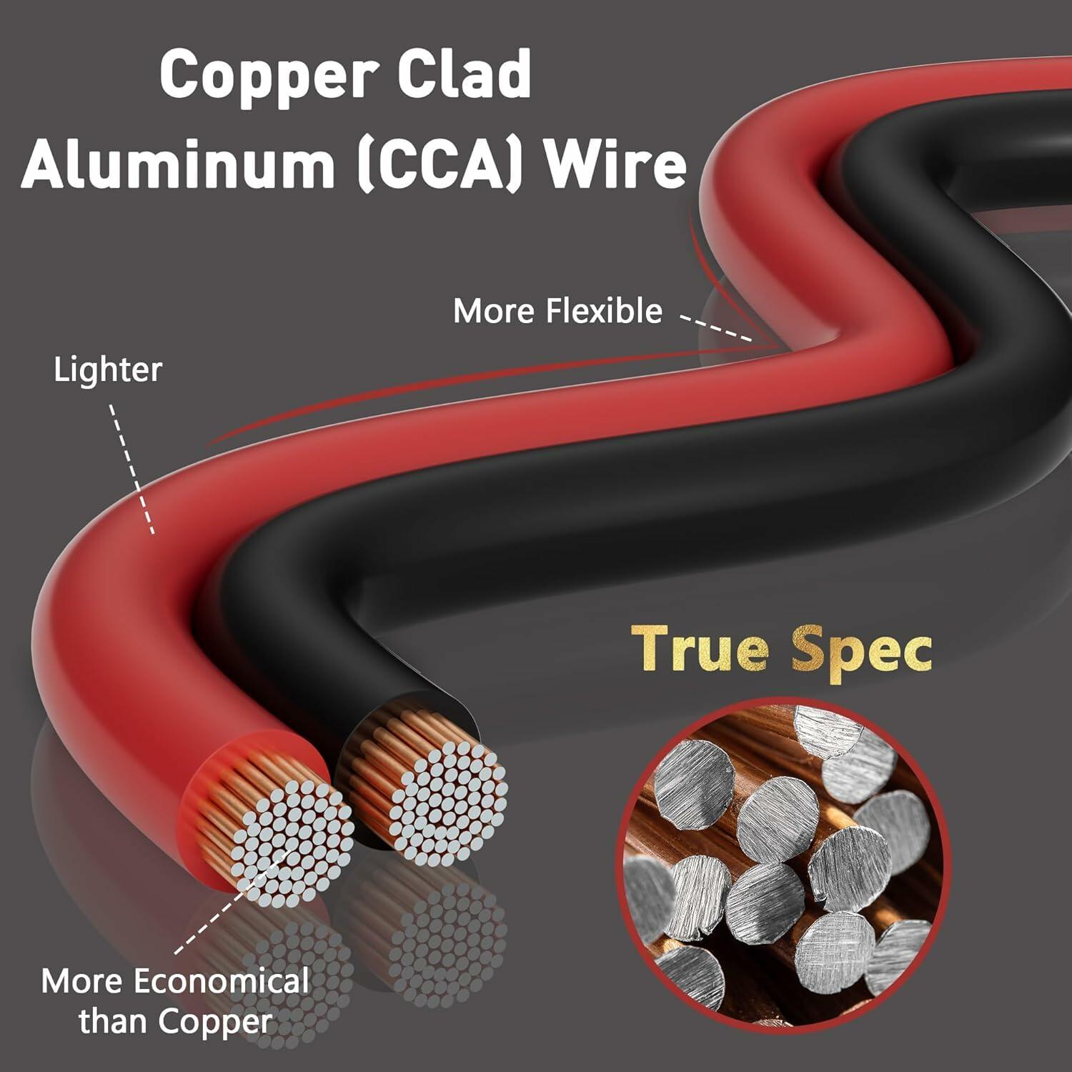 - Advantage of Copper clad aluminum: The HiFind Red Black Hookup Electrical Wire Cable Is Made of Cca Copper Clad Aluminum,Offering The Same Signal Frequency And Reliability In Terms Of Corrosion Resistance To Copper Wire, but Lighter And More Flexible. The Cost Of Cca Vs Oxygen Free Copper Is Much Lower And You Can Enjoy The Same Functions And Reliability As Copper Wire Without Paying The Extra Cost. Going Through Many States Of Testing To Ensure The Highest Performance And Reliability.