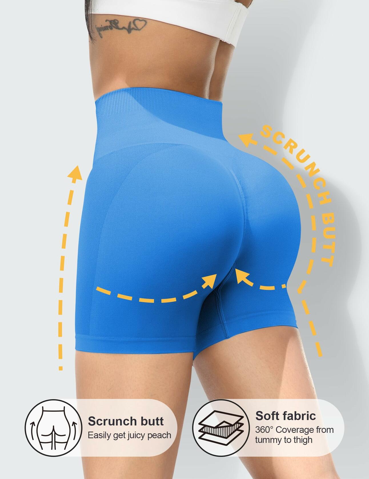 HIGORUN Women's High Waisted Seamless Workout Shorts Dark Blue Size L