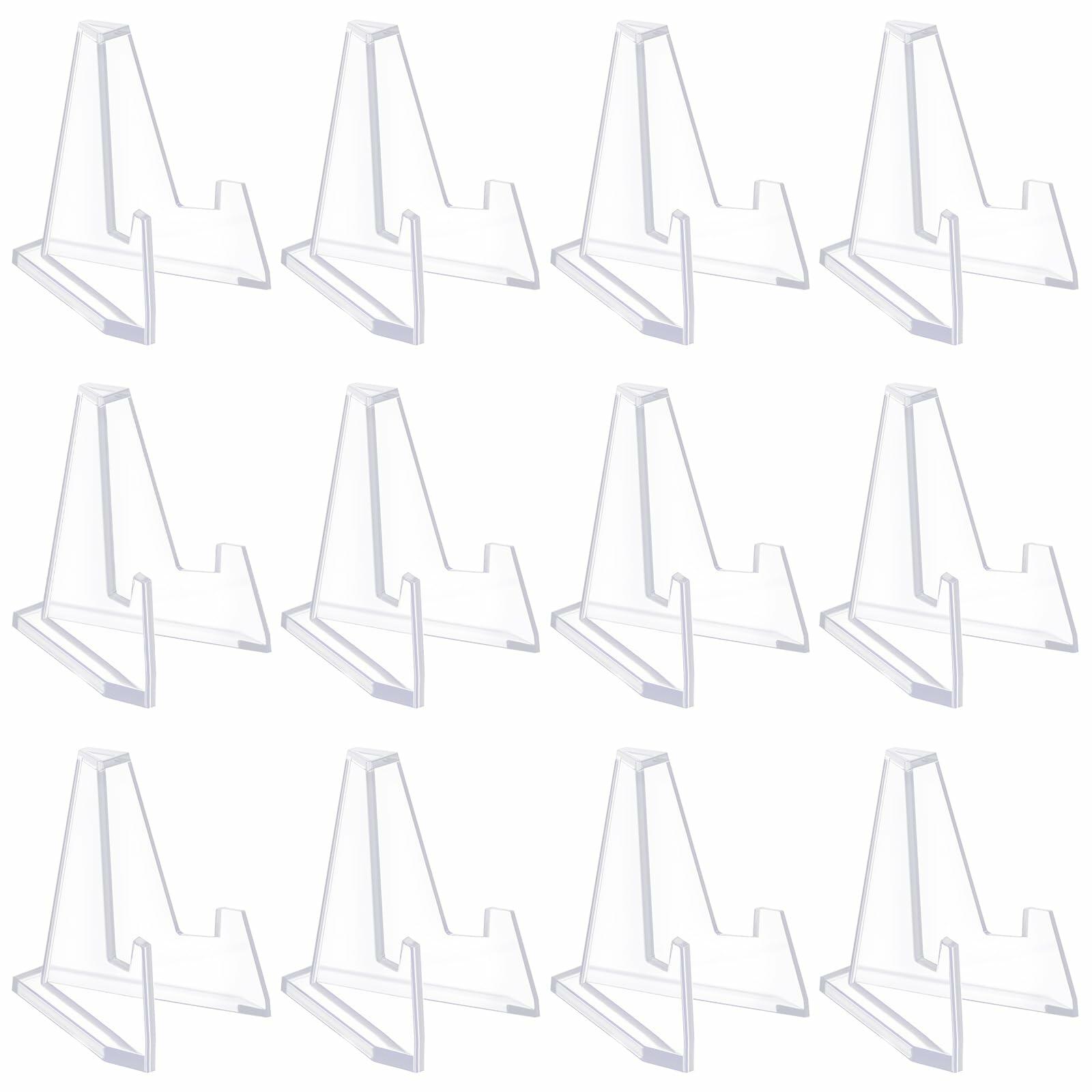 - PACKAGE & NOTICE: 12 packs 2.68inch tall mini clear acrylic easel stands, enough for your spare or replacement.Make sure your collection is less than 0.59inch diameter. Please stand them on the flat place.