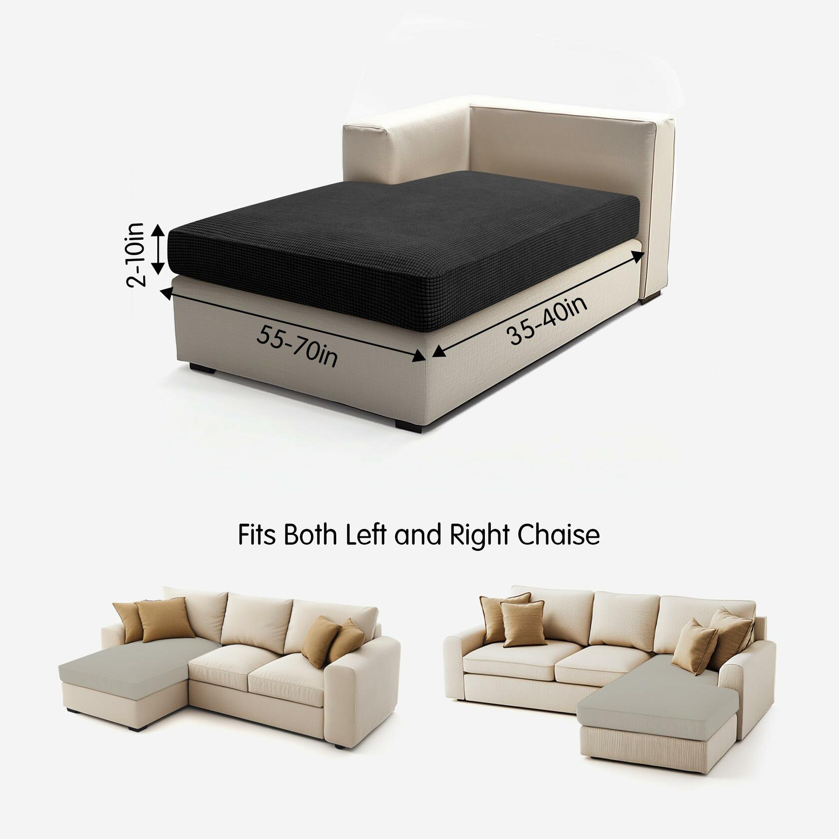 - SIZE GUIDE: 1 PC included. Fit a cushion with 55-70" in length, 35-40"in width, 2-10" in height. With great elasticity, fits for more than 90% cushion. Wider size application due to the elasticity and the stretchy band we have on the bottom.