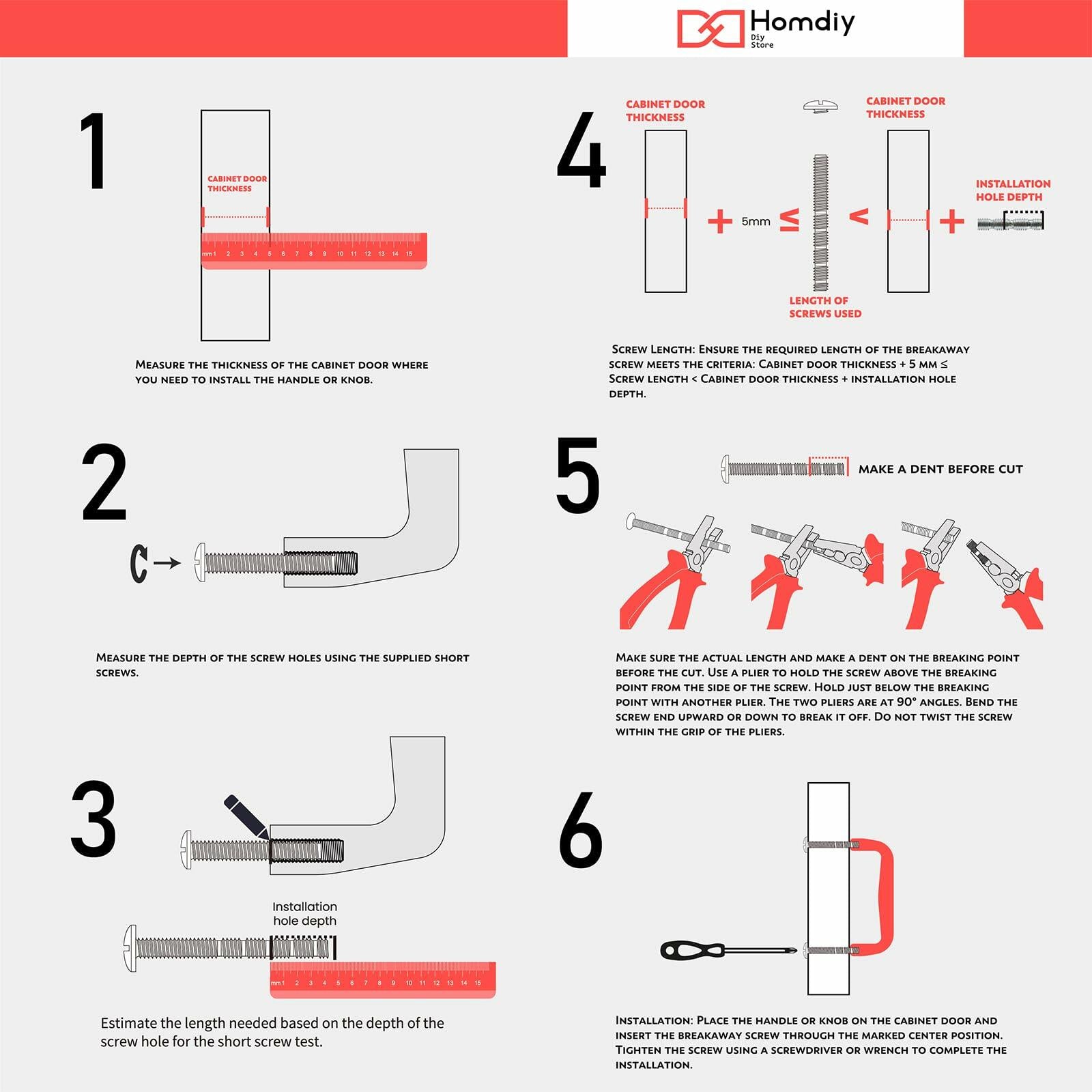 - 🌟【Easy Installation】Drill holes at the place where you want to install kitchen cabinet hardware according to the hole center, then pass through the screw from the back of the board and tighten it to the cabinet knobs. Each gold cabinet knobs matched two size screws (1 inch & 1.77 inch). BUT IF YOU NEED OTHER SCREWS, we also have 30/35/40/50mm screws, please feel free to contact us.