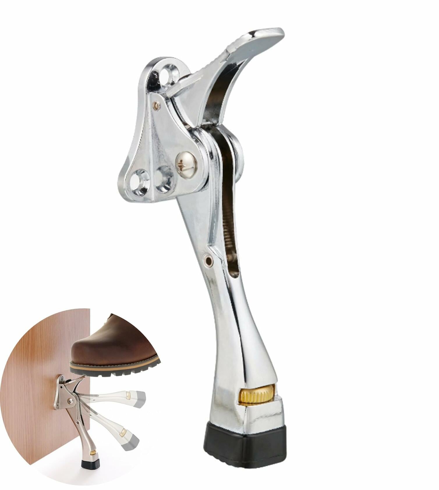 HOME&I Easy Pedal Kick Down Door Stop Chrome 4 Inch 1 Pack Height-Adjustable