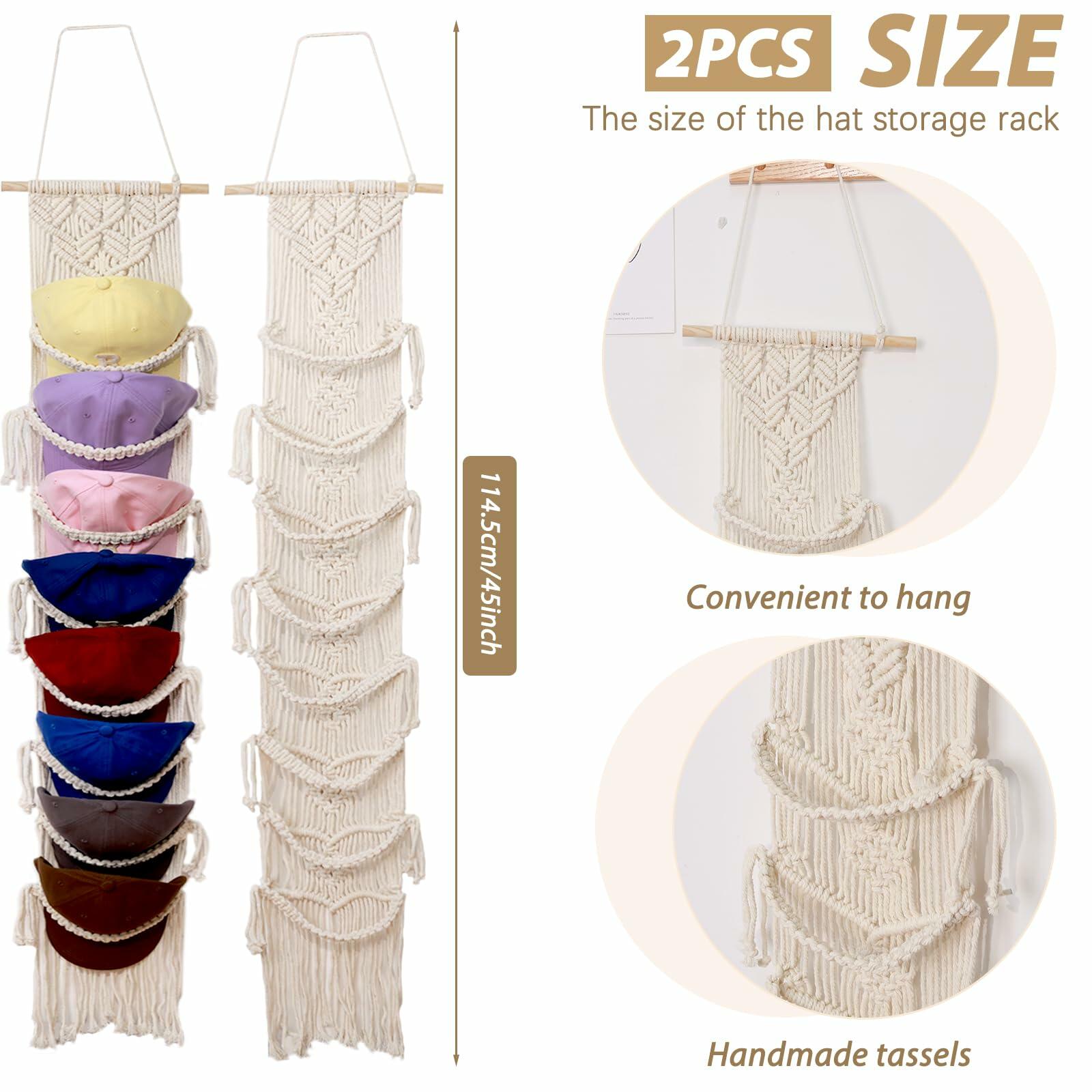 Add a touch of bohemian flair to your space with this handwoven hat holder, crafted from premium cotton rope and adorned with elegant tassels. Perfect as both a functional cap organizer and a stylish wall decor piece, it elevates your bedroom wall decor or any room with its artisanal charm. A must-have for home organization lovers!