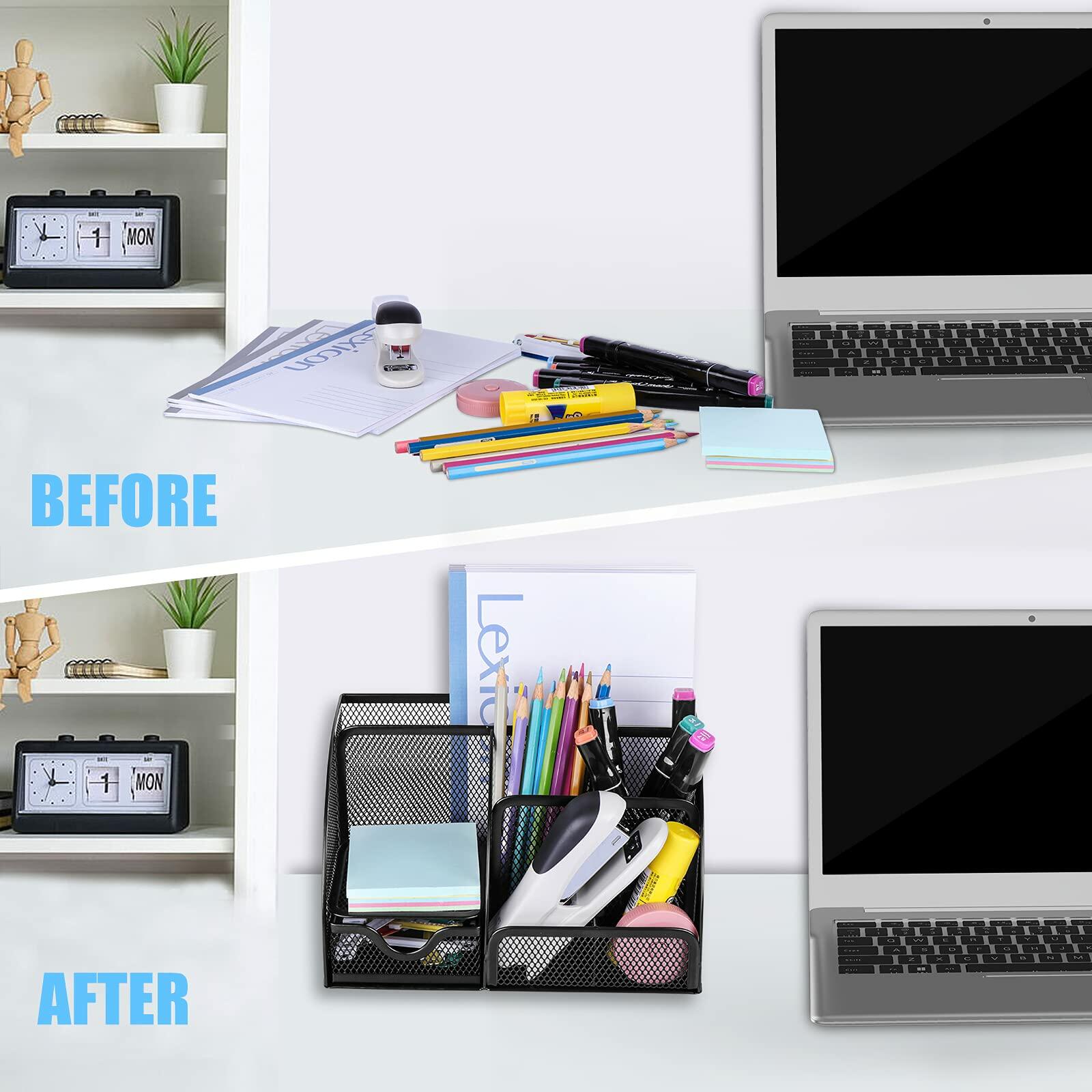 HOPECK Mesh Desk Organizer 6 Compartments 1 Drawer Black Multi-Functional