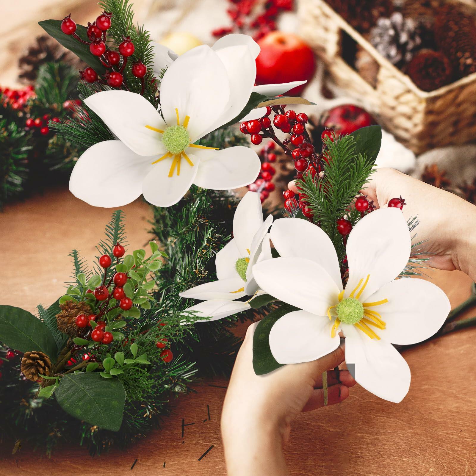 Hotop Christmas Floral Picks 16in Magnolia Pine Berry Branches 4 Pcs