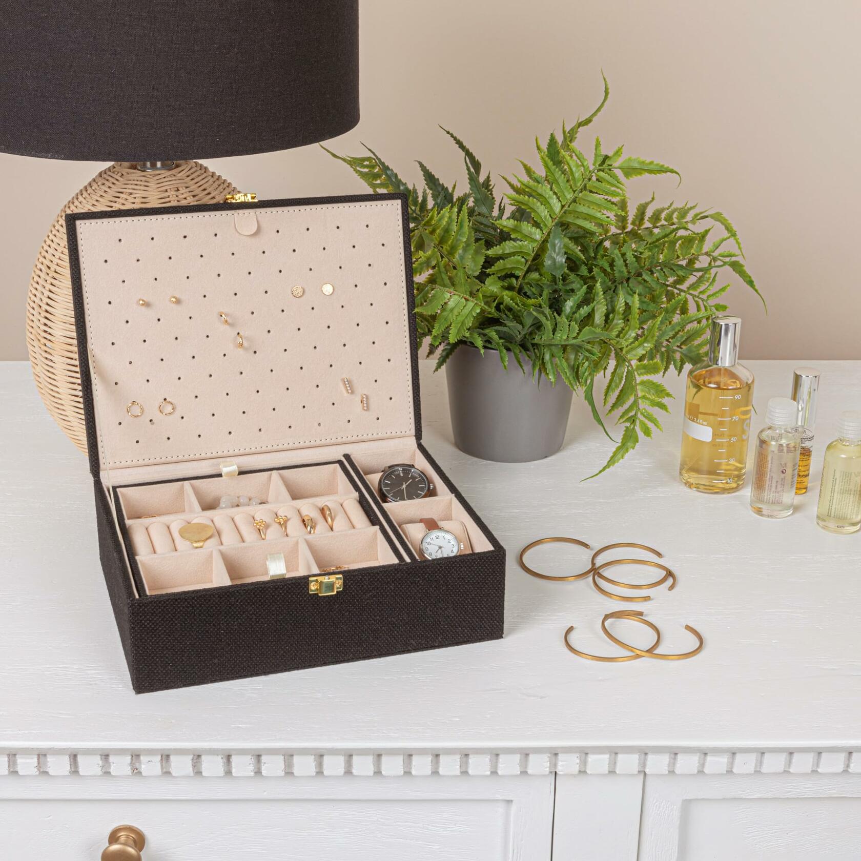 Household Essentials Vegan Leather Travel Jewelry Organizer Box Caramel