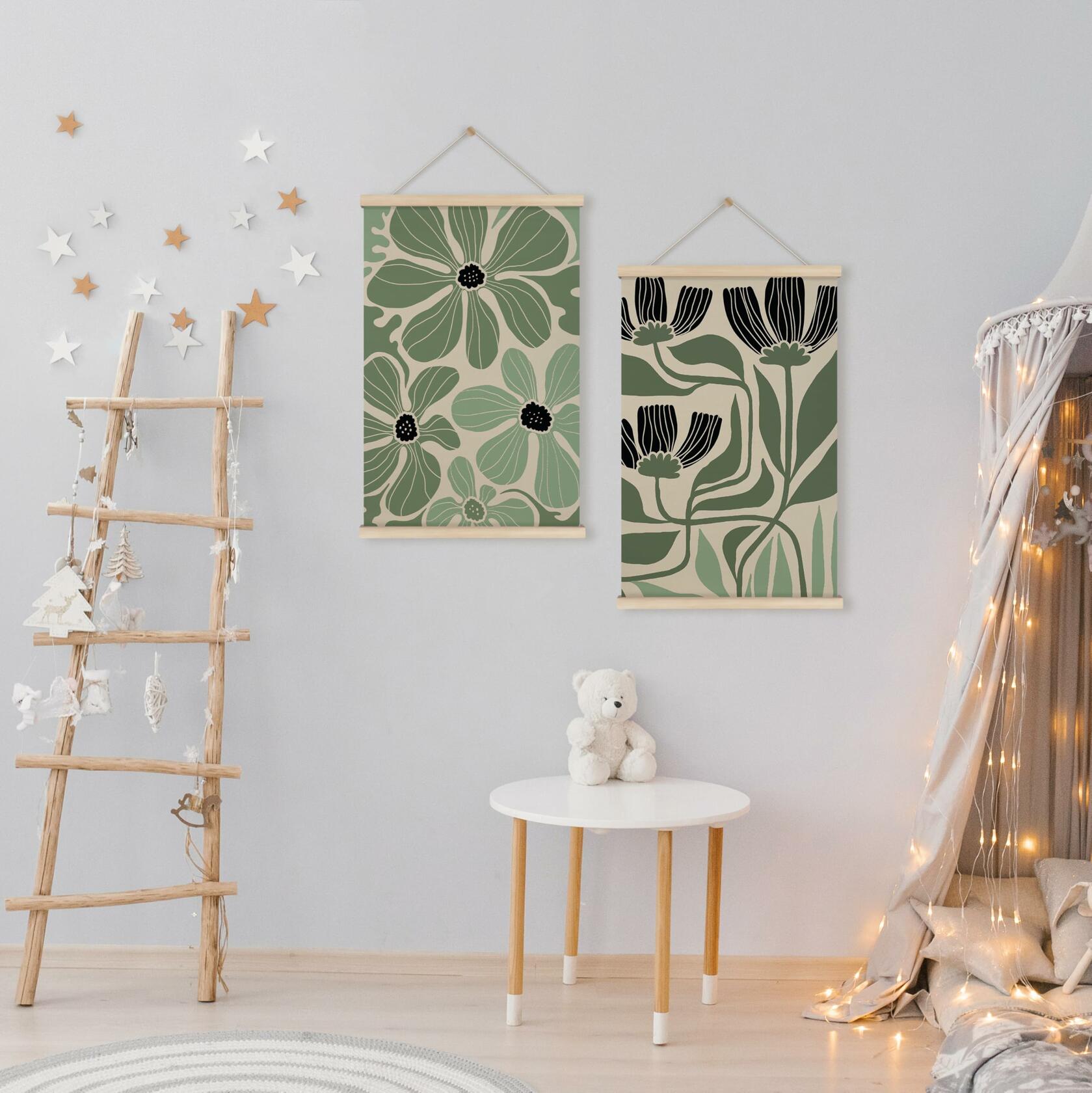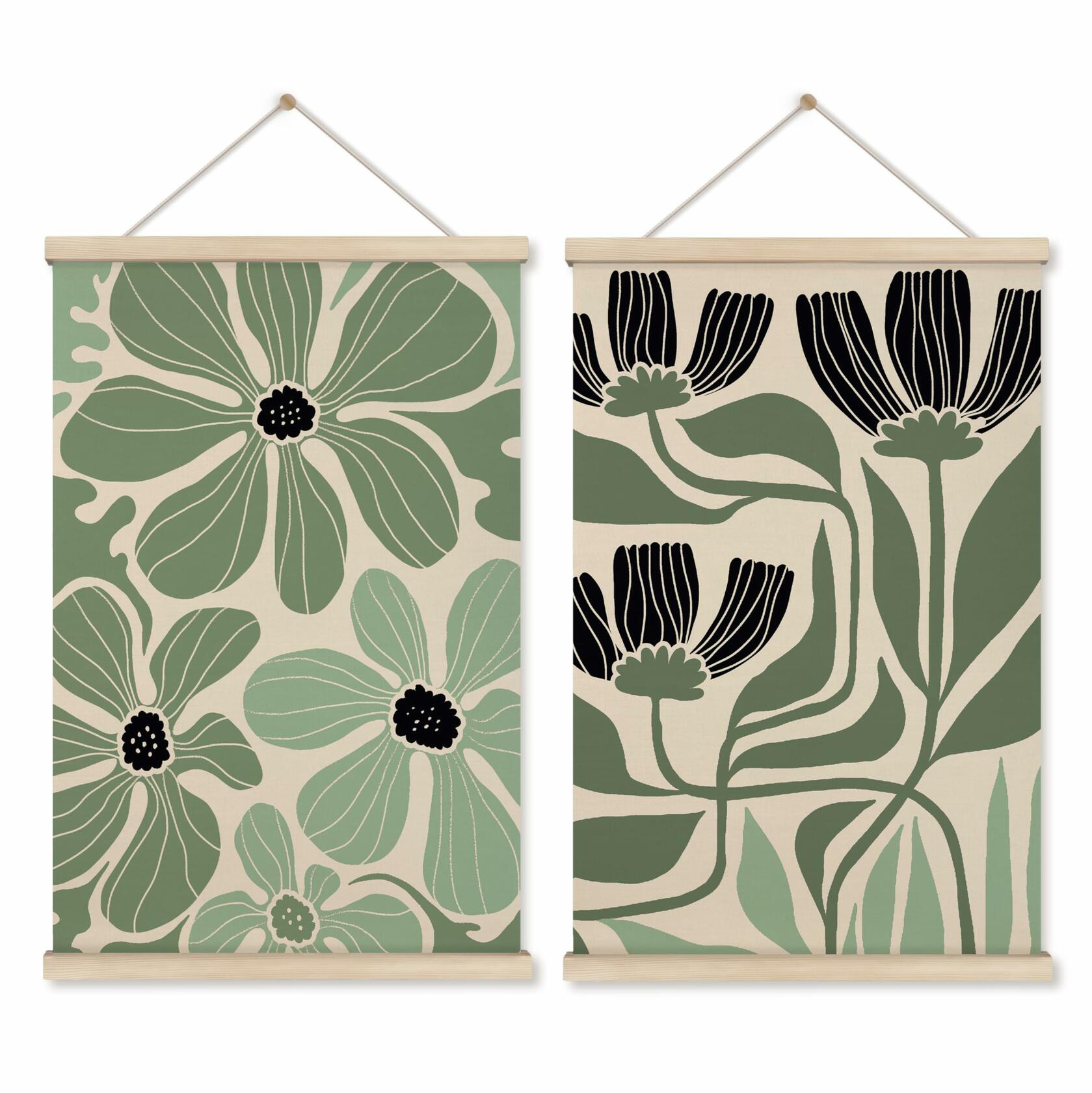 HRQKO Boho Black Flowers Wall Art Set of 2 Wooden Frames 16x24 Inch