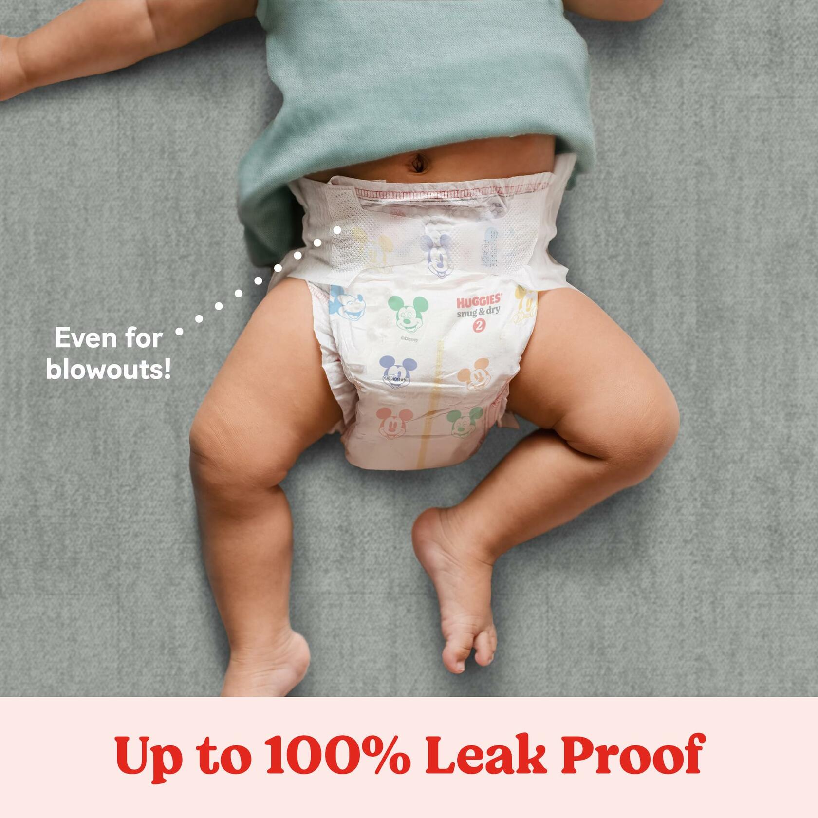 - New & Improved Snug & Dry disposable diapers are up to 100% leakproof – even from blowouts