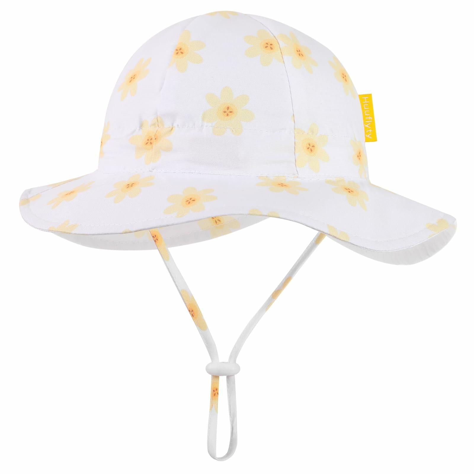 Huuflyty Baby Girl Adjustable Sun Hat Wide Brim UPF 50+ Floral Khaki Size 6-24M