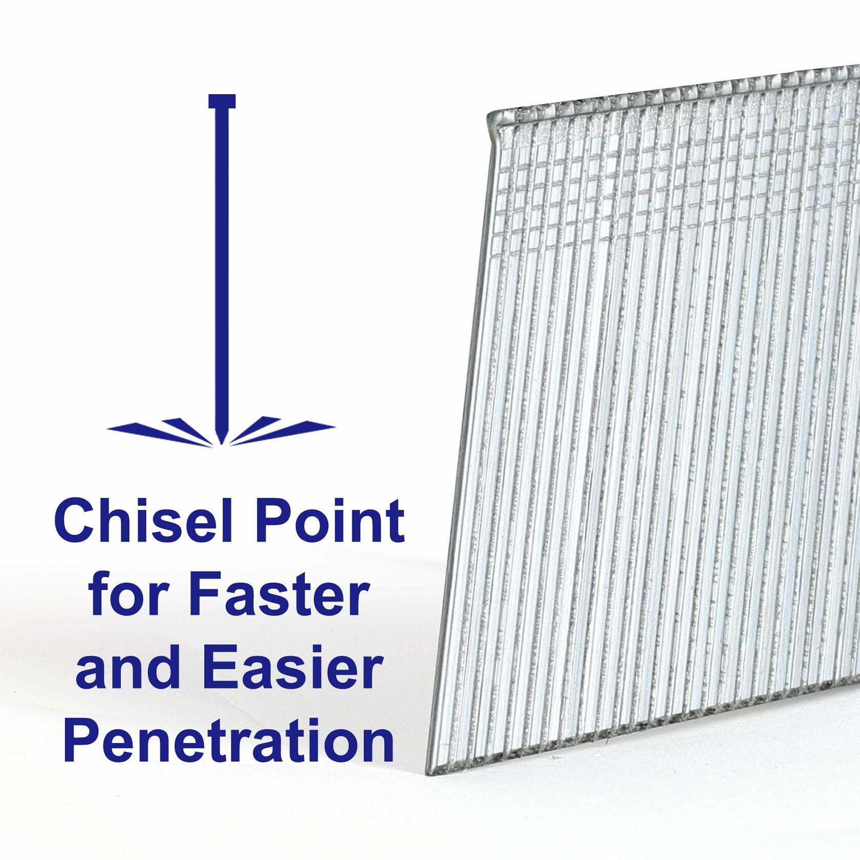 HW HAMWOO the angled finishing nails has 3 different sizes, including 1-1/4 inch, 2 inch, 2-1/2 inch, You can choose different sizes of nails according to actual needs.the T-shaped head and Chisel point type help you push the nail out more accurately and conveniently.Galvanized surface can block rust and corrosion resistance.The high quality 16 gauge angled nail ensures consistent drivability. user include: door/window trim, paneling, baseboard, crown molding, door jams, cap & shoe molding and much more.There are 900 pieces finishing nails with 3 different sizes in the package(1-1/4"-300, 2"-300, 2-1/2"-300). Fasteners per stick: 50.