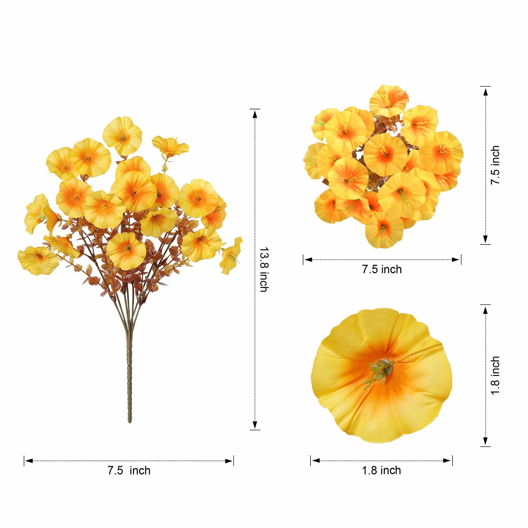 - Package Include: 12 bundles of artificial outdoor morning glory flowers with fall eucalyptus leaves. Pot not include.