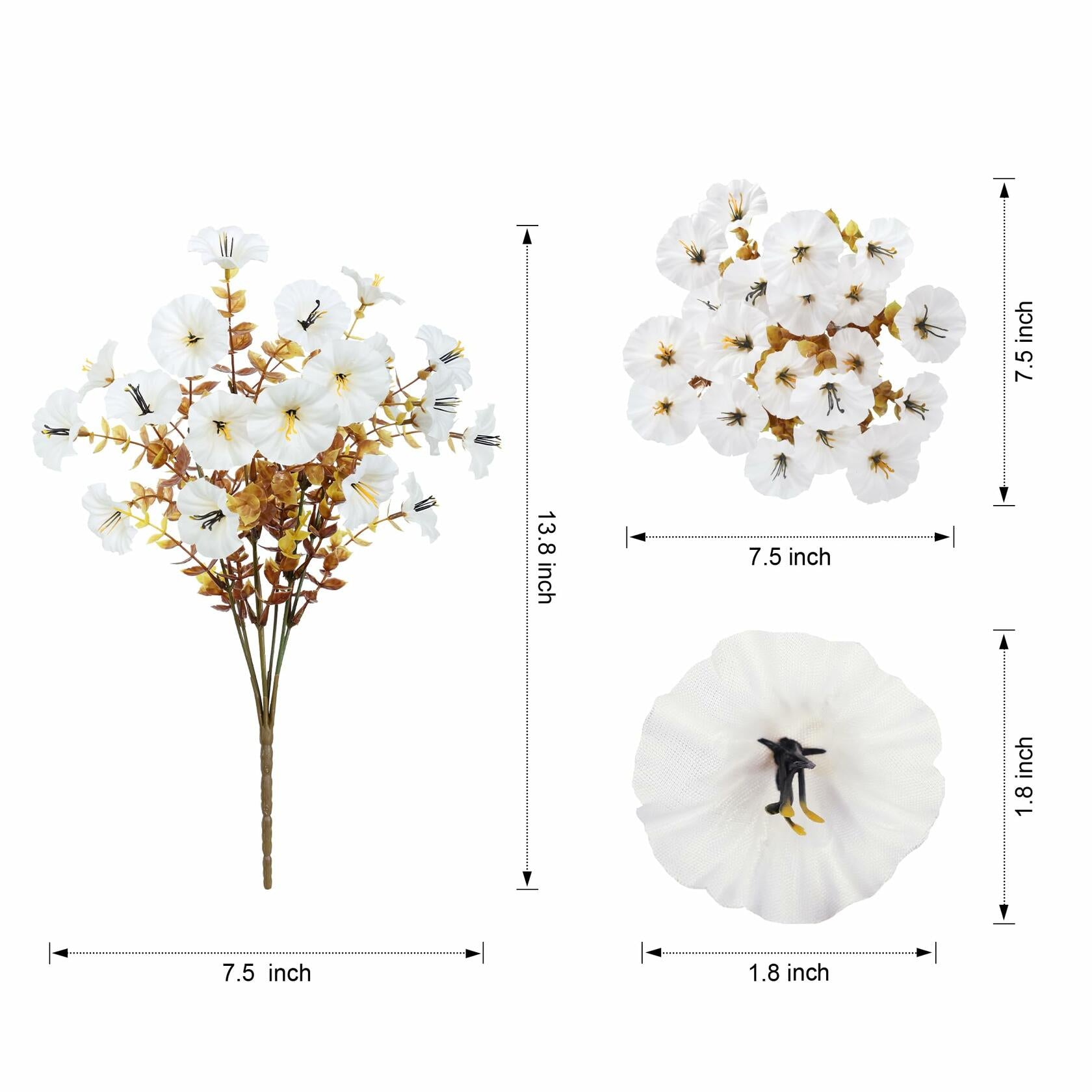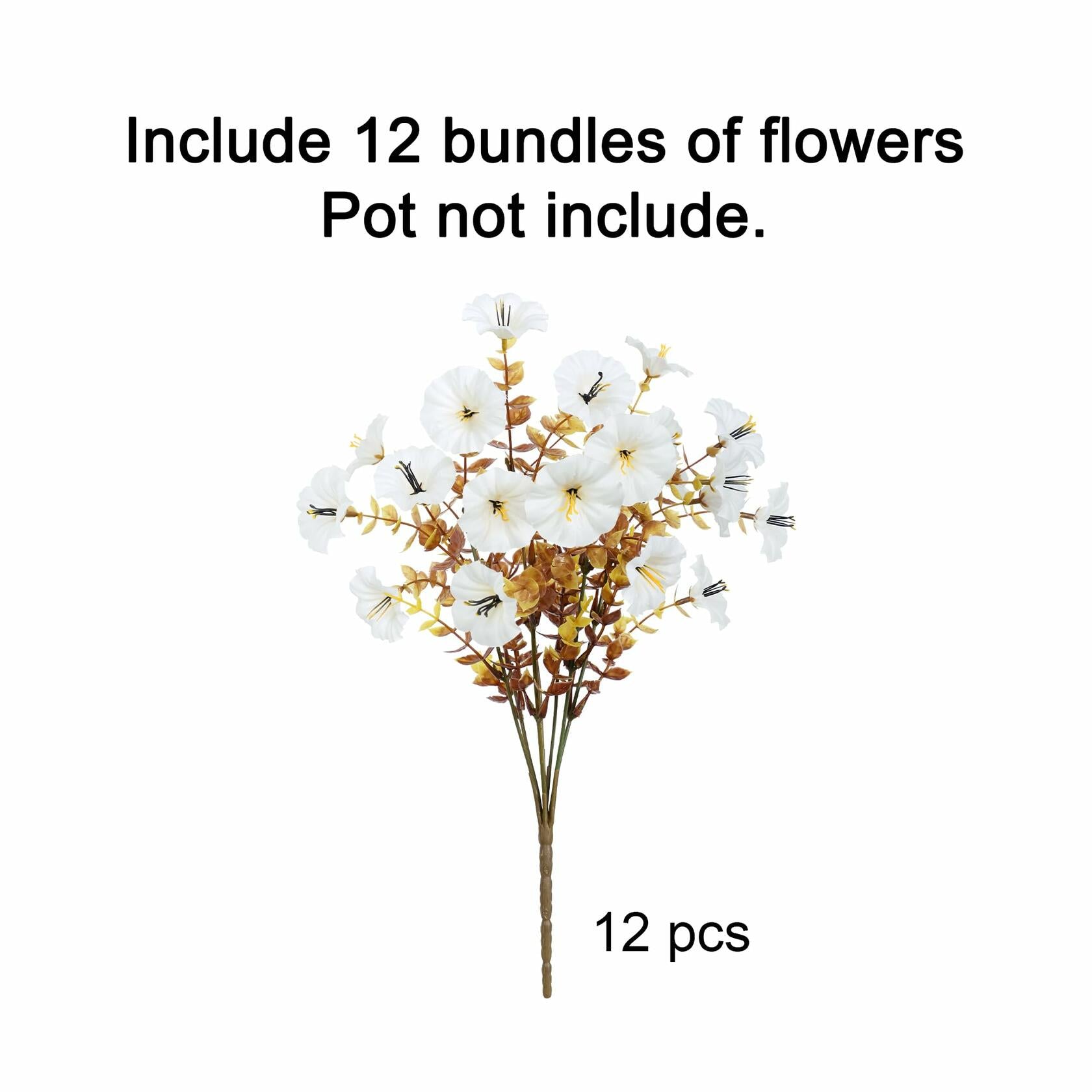 - Package Include: 12 bundles of artificial outdoor morning glory flowers with fall eucalyptus leaves. Pot not include.