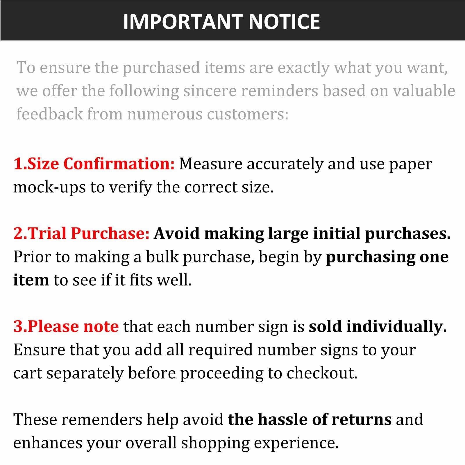 ◎ HIGH VISIBILITY - White background and bold black numbers on this Number Sign ensure that it is easily visible from a distance.