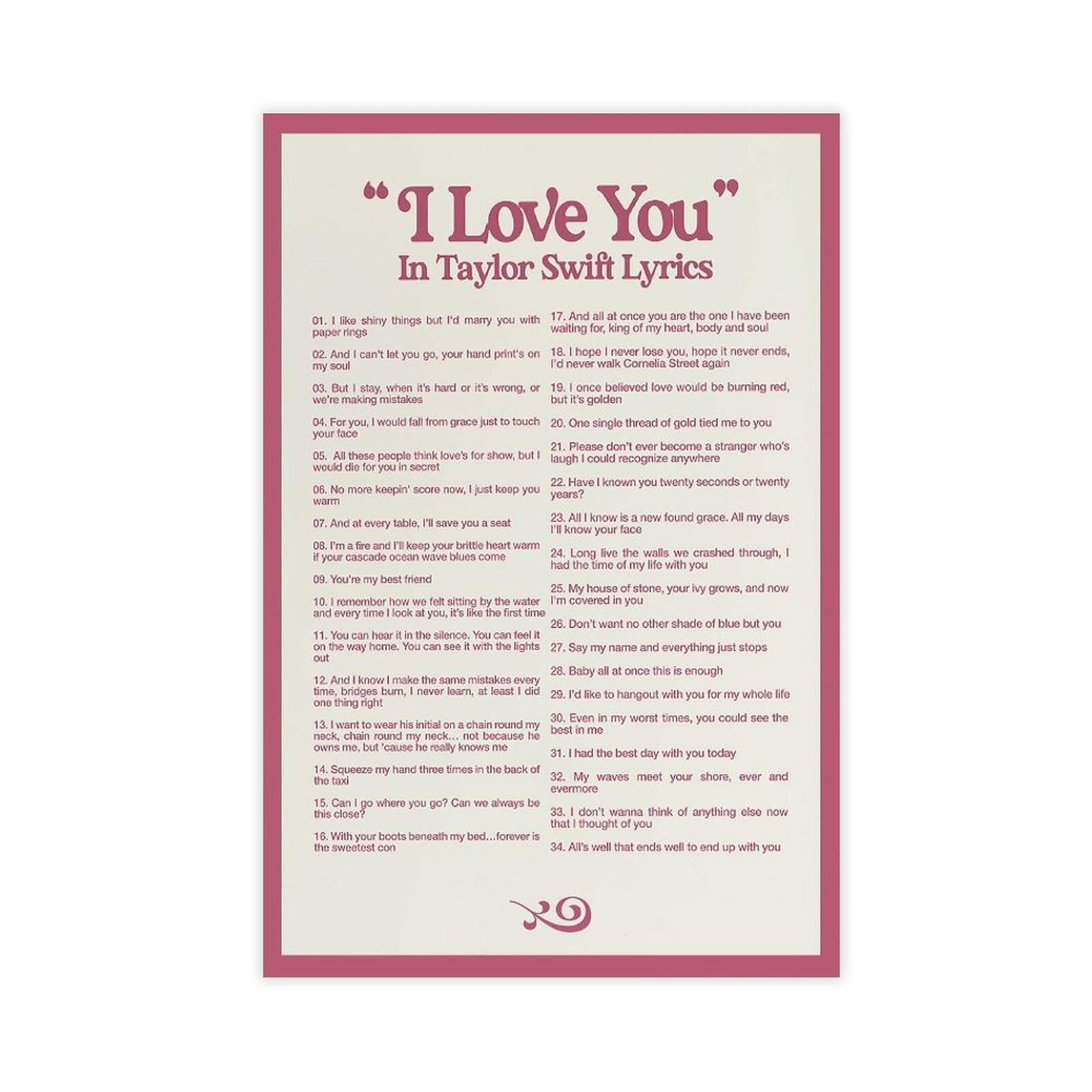 I LOVE YOU Lyrics Canvas Poster 12x18 Bedroom Wall Art Unframed Decor
