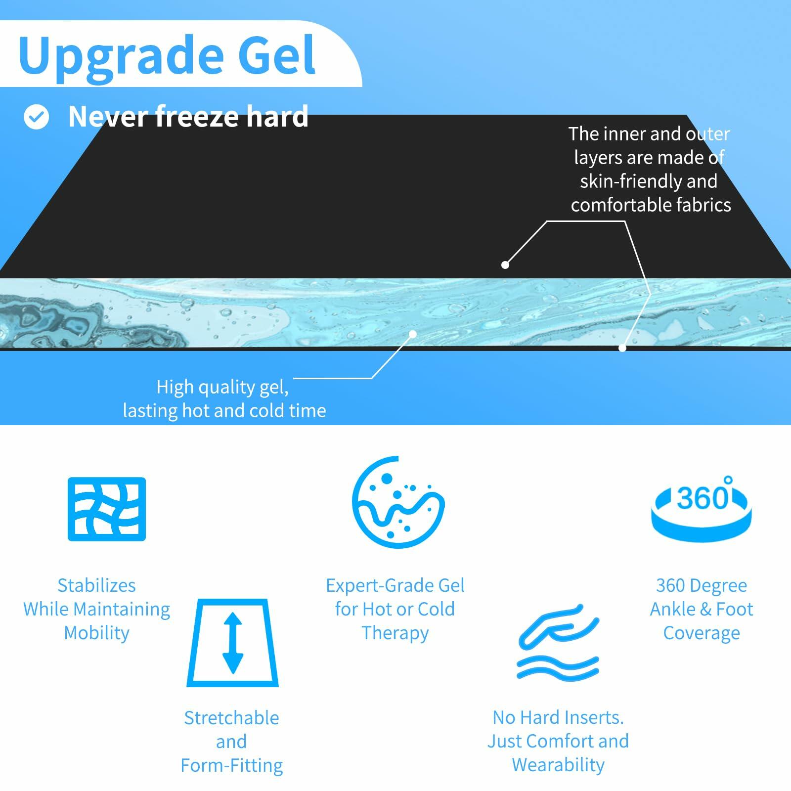- 【Soft Solid Gel】Ankle ice packs are filled with upgraded solid gel to keep them soft and pliable when frozen, allowing you to keep your feet flexible after wearing them. The gel is evenly distributed and can heal the injured area in all directions. Improved solid gel retains hot and cold longer. Providing you with safe and natural relief. No leaks or tears for better application.