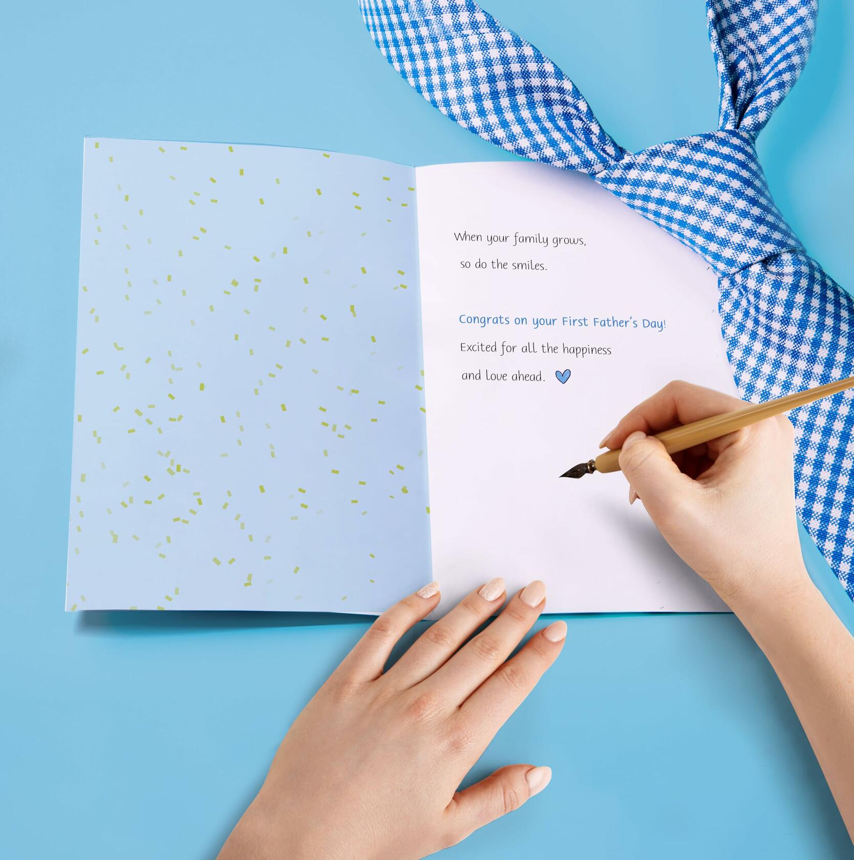 - Heartfelt First Fathers Day Card: This card captures the joy of a first-time dad’s journey with the message “When your family grows, so do the smiles. Congrats on your First Father’s Day!” Perfect for honoring his new role and the endless happiness ahead. Ideal for moms, partners, or relatives to celebrate the new dad’s first Father’s Day, whether from a baby bump or newborn.