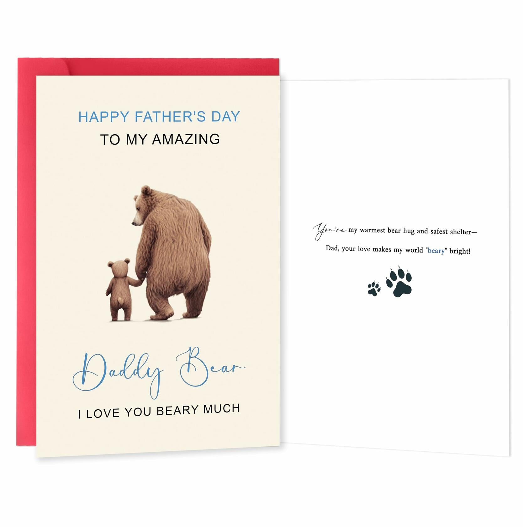 - Funny Fathers Day Card: This card playfully combines warmth and humor with the message“Happy Father’s Day to my amazing Daddy Bear—I love you BEARY much!”Perfect for daughters, sons, or kids to celebrate their dad’s protective yet playful“bear-like”love.