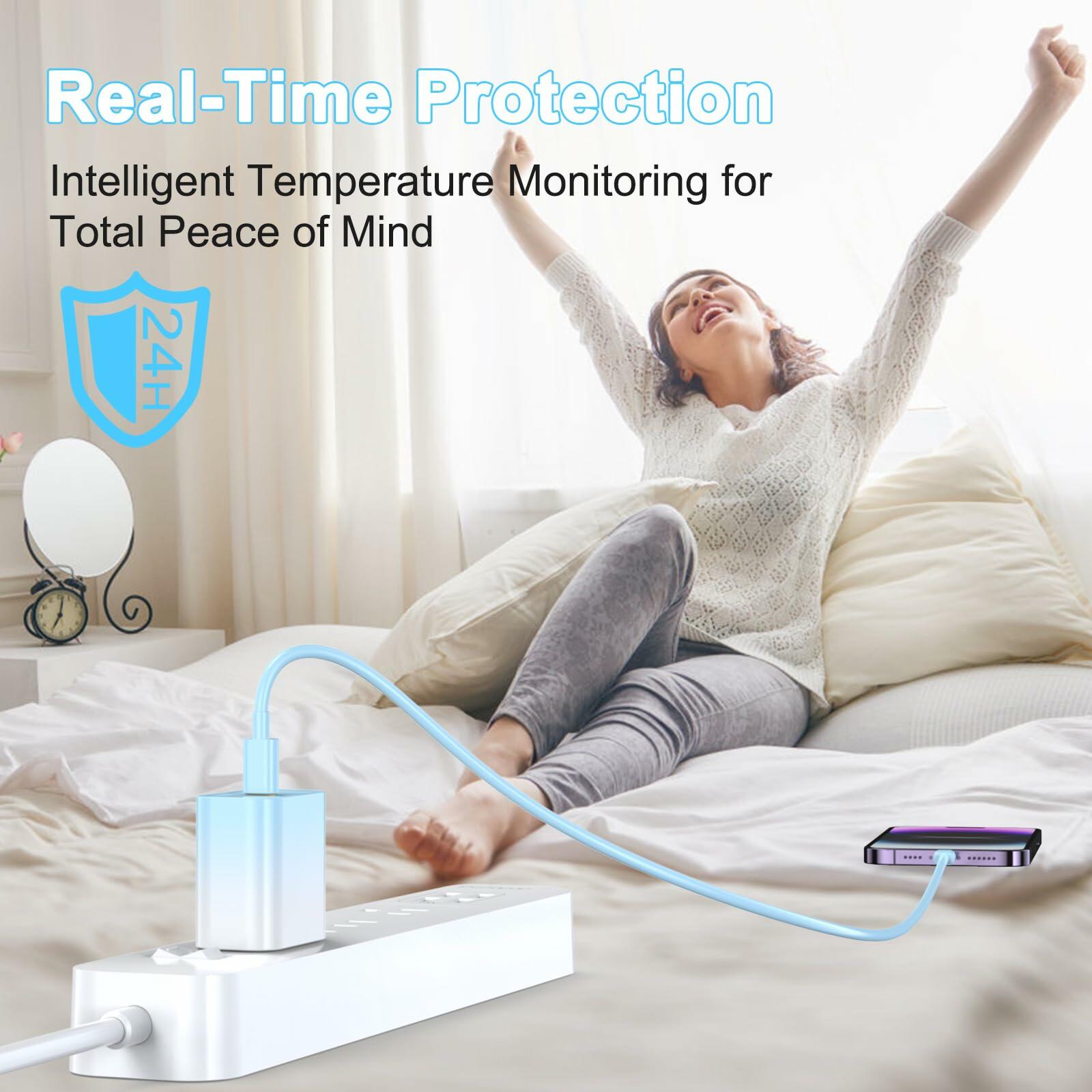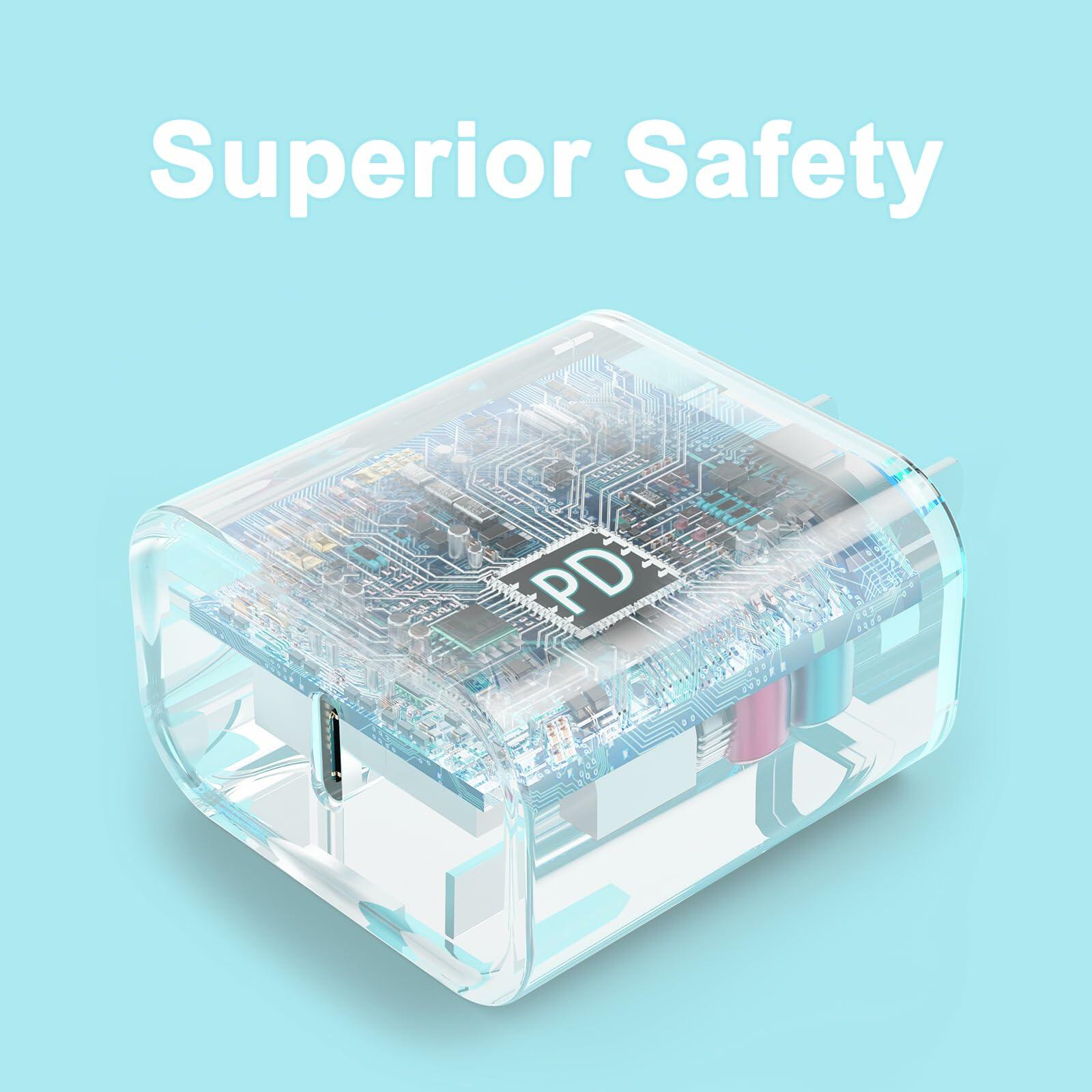 - Advanced Safety Features: With built-in intelligent chip,USB PD fast power adapter provides over-current, over-voltage,over-heat and short-circuit protection for your devices to ensure safer charging