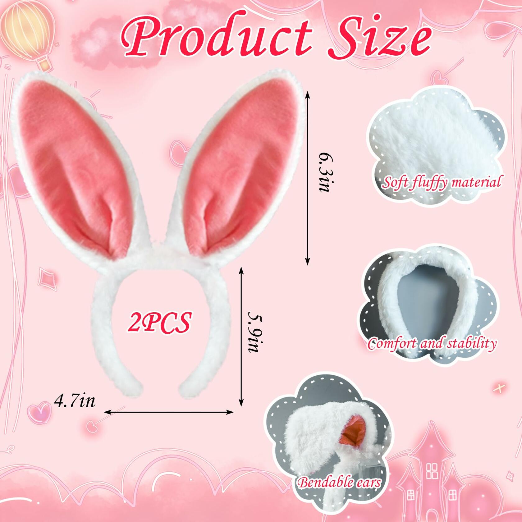 - Adorable Bunny Ears Design:This set of two bunny ears headbands features irresistibly cute white toned ears with soft pink inner linings. The rabbit ears headband plush texture mimics real rabbit fur, adding an extra touch of charm that will make you the star of any event, be it an Easter,Halloween,Christmas celebration or a bunny costume party.