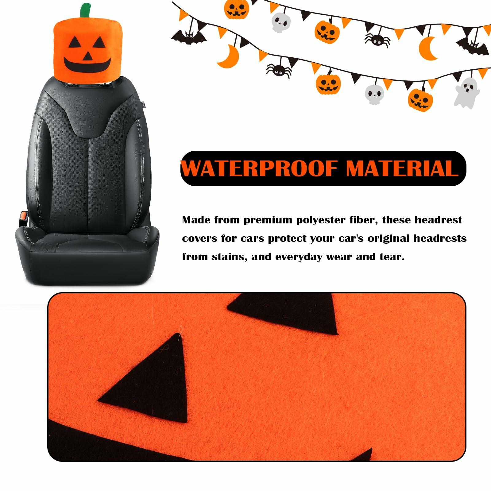 IHOTDER 2PCS Halloween Pumpkin Car Headrest Covers Universal