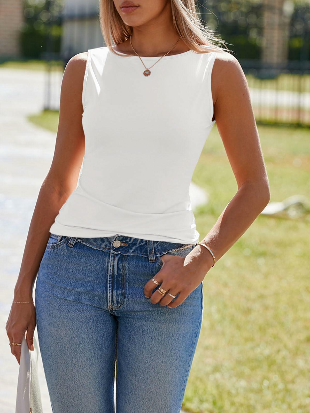 - Features: This 2025 summer trendy tee features with slim fit sleeveless design, boat neck, and backless silhouette, elevating your style and blending classic elegance with casual charm, perfect for creating y2k-inspired outfits