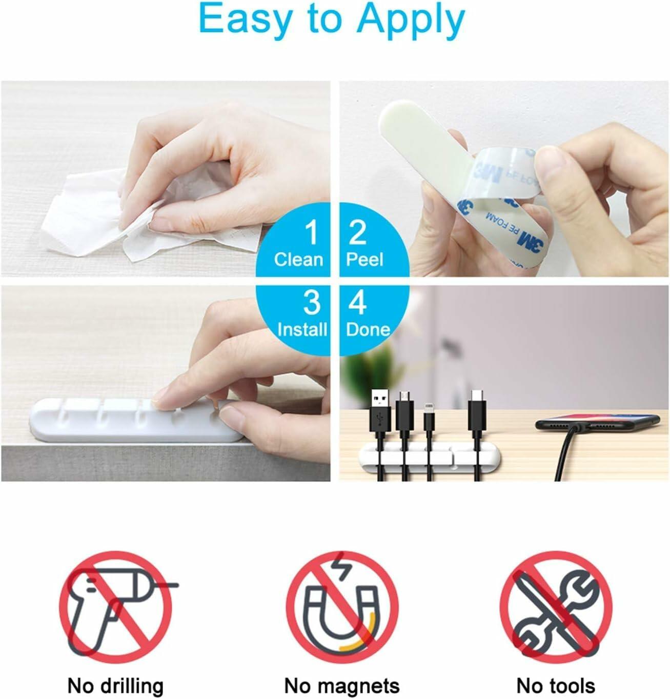 - Adhesive Cable Organizer White: This cord holder comes with a strong 3M adhesive pad that can adhere to any smooth and clean surfaces at home or office, such as glass, plastic, metal or wood tables, desks and walls. Easy to install no need to hammer holes or attach screws.