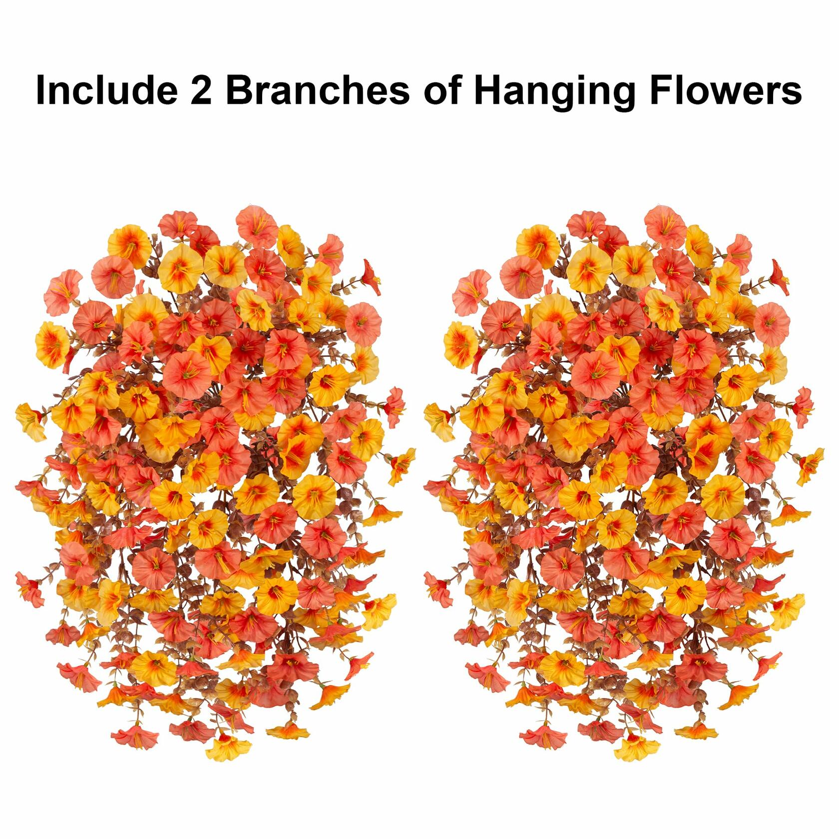 Ivydale 2 PCS Artificial Fall Hanging Flowers Silk Faux Petunias Orange+Yellow