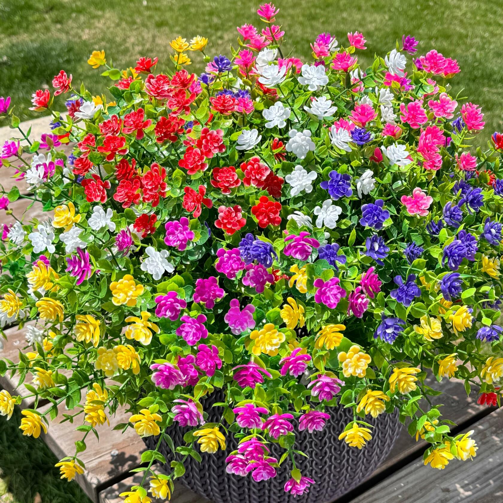 - PREMIUM MATERIAL: Artificial outdoor flowers are crafted from premium plastic, are specifically designed for enhancing outdoor spaces. These faux flowers are UV resistant, ensuring they maintain their vibrant color and remain unaffected by harsh weather conditions like strong winds and heavy rainstorms.