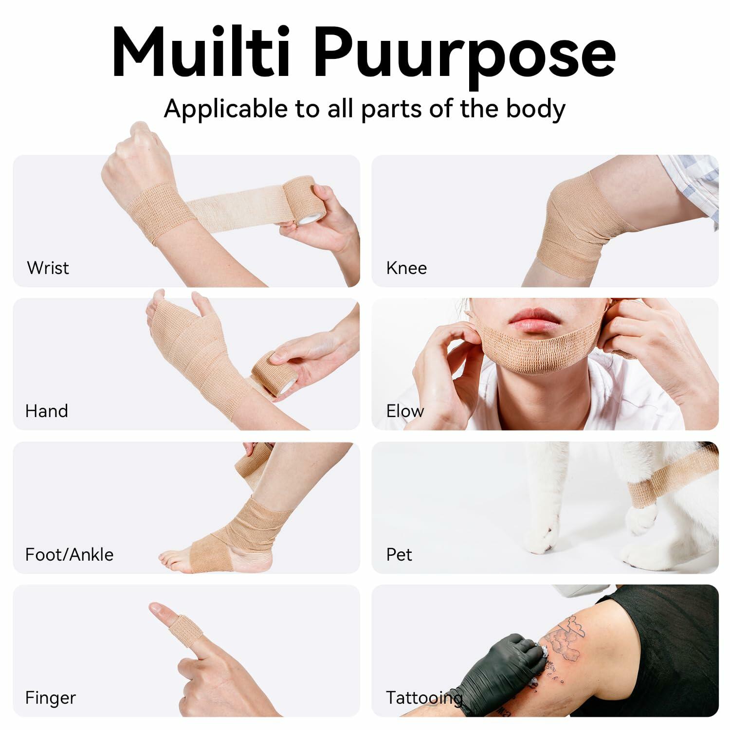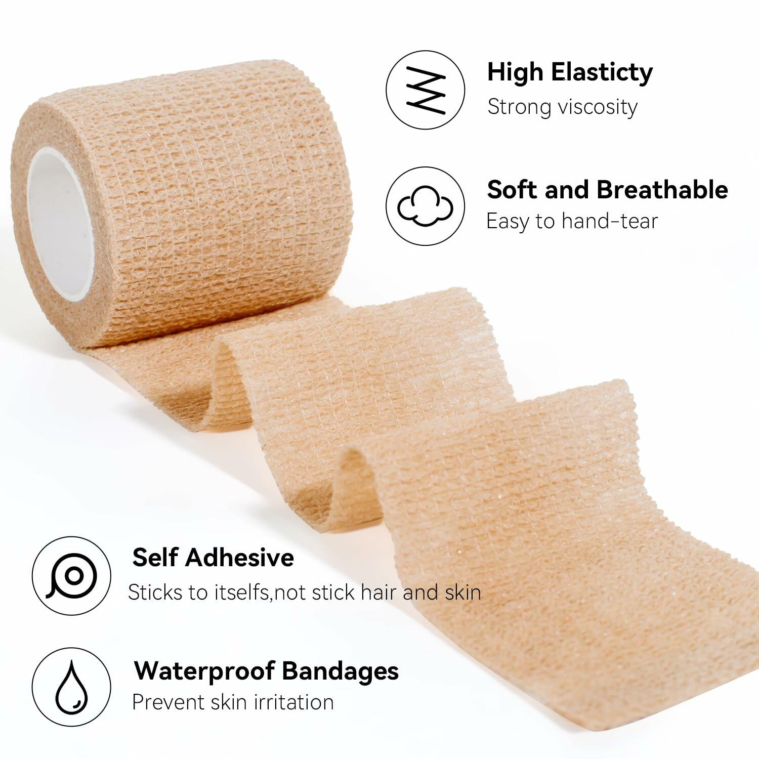 - 【Self Adhesive Bandage】Our elastic cohesive wrap Bandage can be self-adhesive, these bandages will not slip, meaning you won't have to frequently readjust them. Unlike non-adhesive bandages, self-adherent tape does not require clips and pins to stay in place.