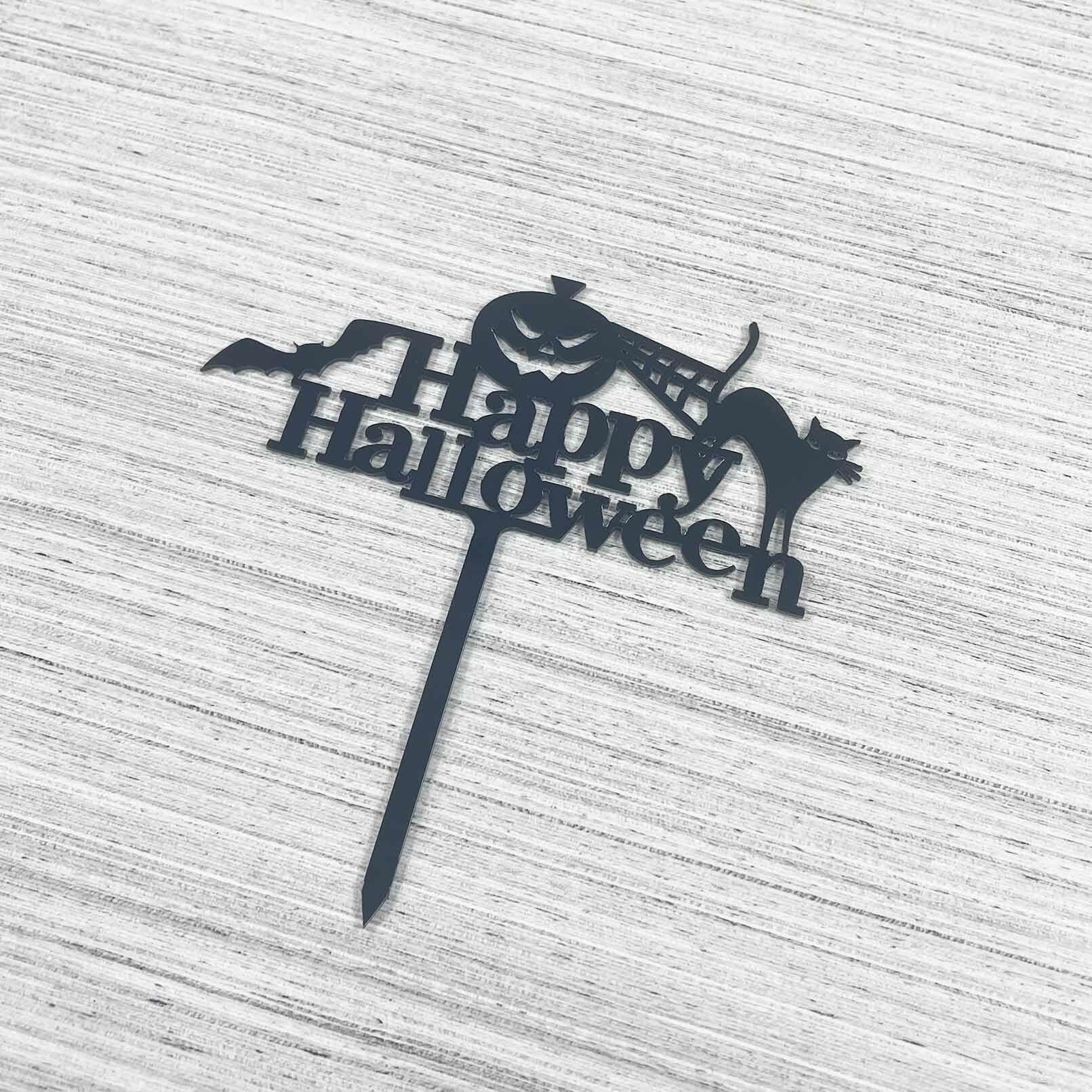 Happy Halloween Cake Topper - Halloween Cake Topper, Halloween Party Décor, Halloween Theme Birthday Party Supplies, Black Acrylic