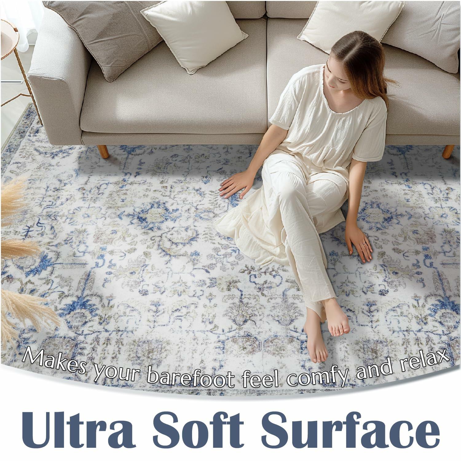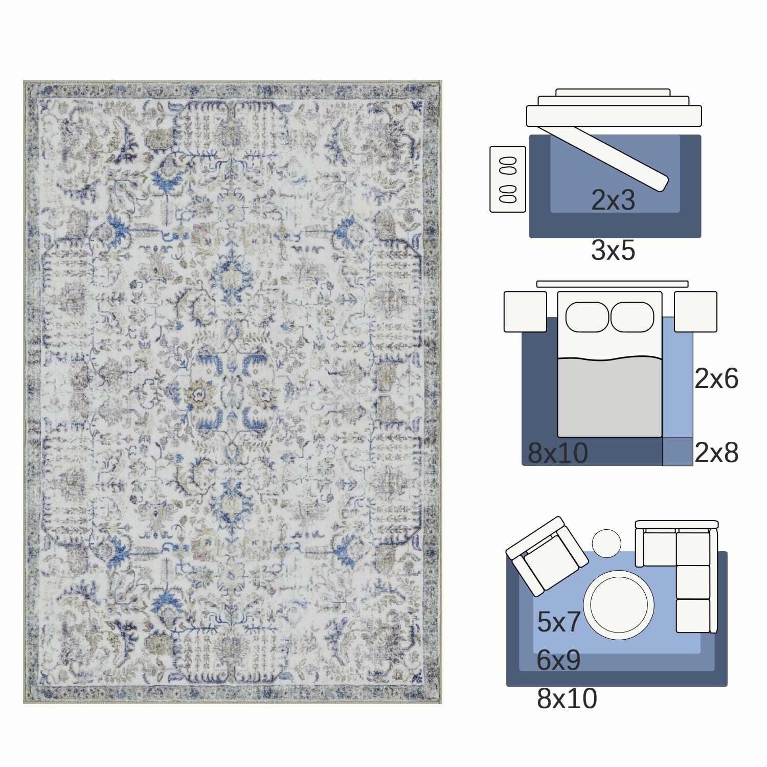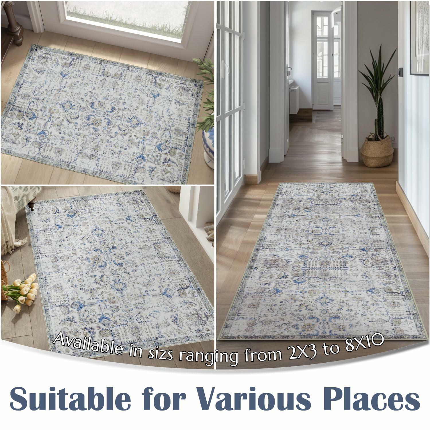 jinchan Area Rug 5x7 Vintage Floral Oriental Washable Non Slip Taupe