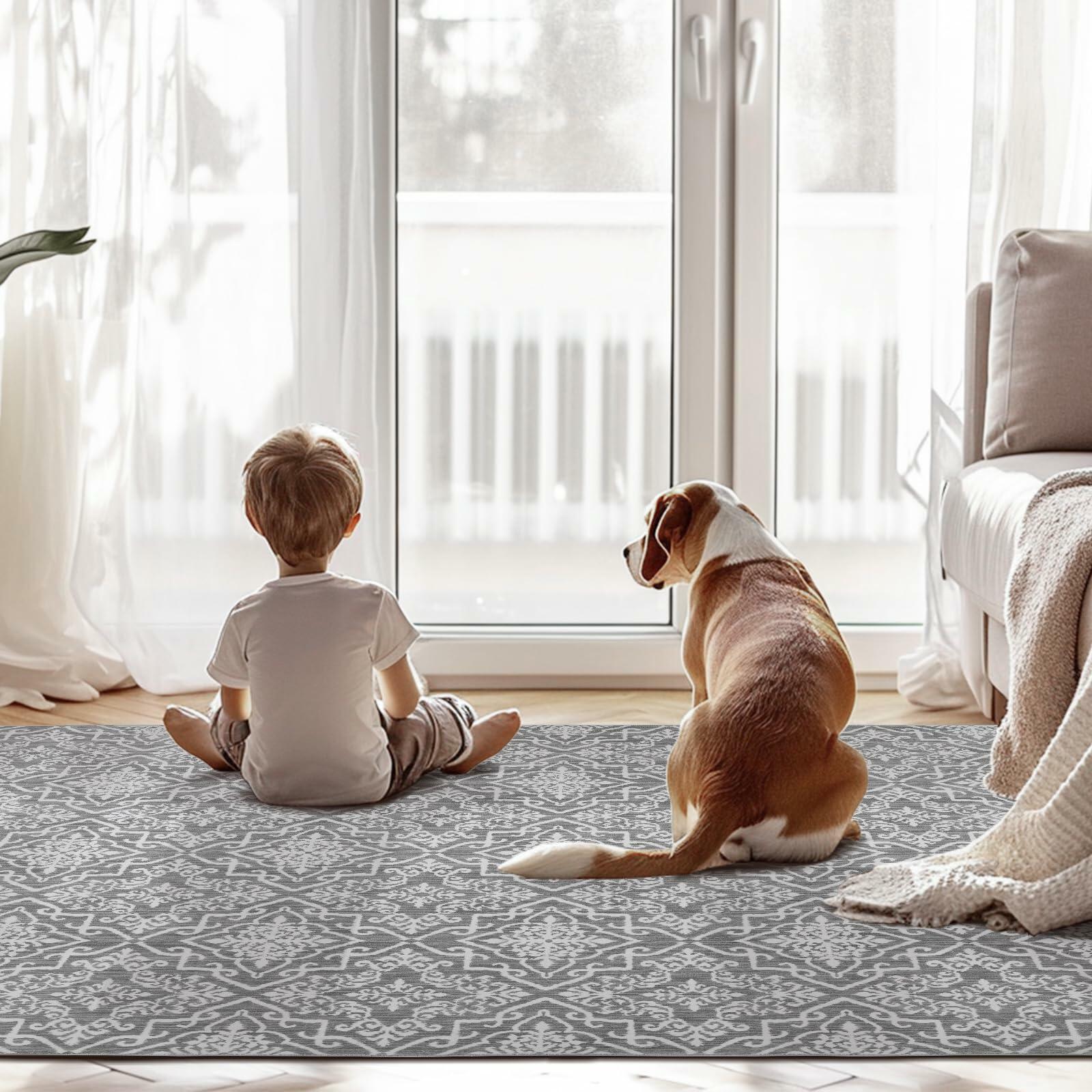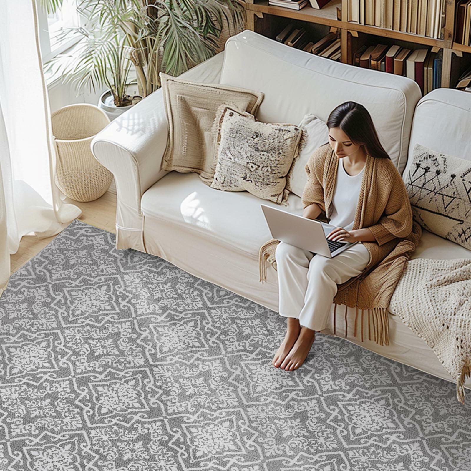 - Moroccan Design: Our rug features a stunning Moroccan trellis pattern, adding a touch of exoticism and style to any room. The intricate tile inspired geometric and floral motifs create a captivating visual appeal