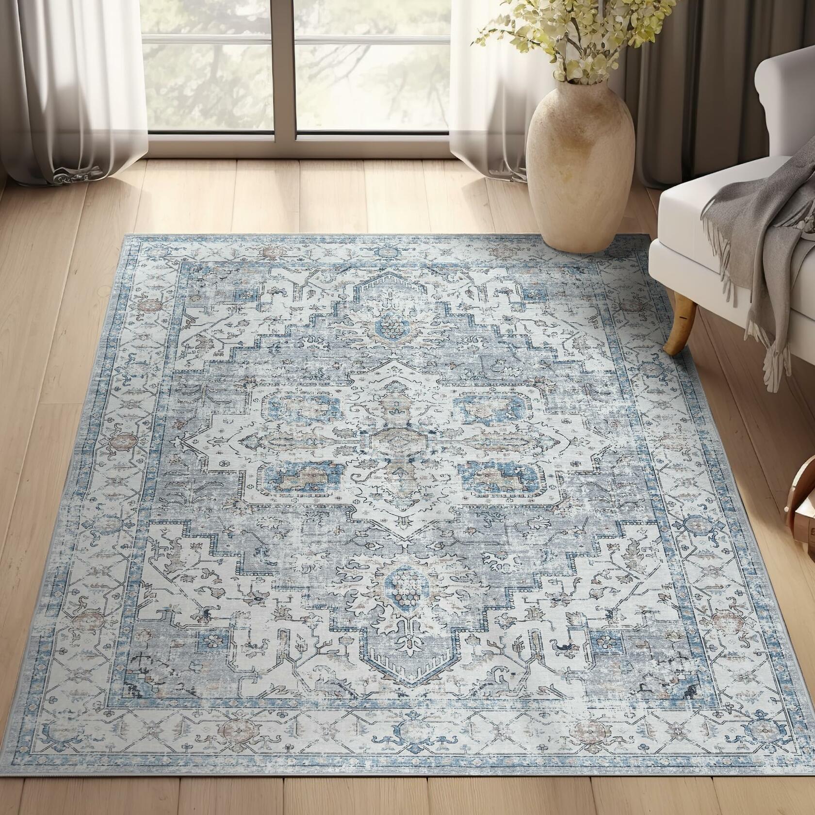 jinchan Washable 3x5 Tribal Area Rug Non Slip Red Blue