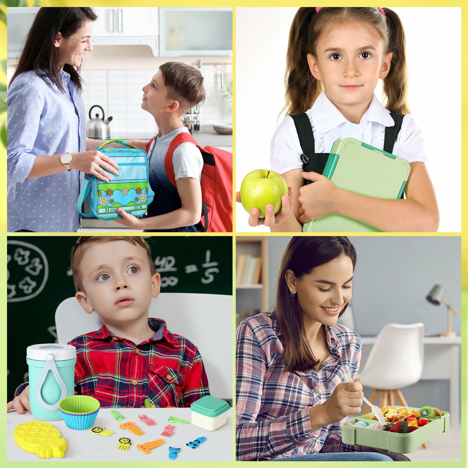Features: More than Just a Lunch Box: Beyond its functional design, this kids bento lunch box set fosters creativity and independence. With our muffin cups, animal food picks, and sauce cup, children can create fun, customized meals, making every lunch an enjoyable experience. Gift for Any Occasion: Whether it's for birthdays, back to school, Halloween or Christmas, this daycare bento box set is a thoughtful gift. The vibrant design, practical components, and quality build to be a cherished part of any child's daily routine, truly making it a gift that keeps on giving. Specifications: Material: Insulated lunch bag: [Canvas, Aluminum] School lunch box: food grade PP material Color: multicolor Capacity: Lunch box: 1300ml / 44oz Package includes: 1 x Insulated lunch bag. 1 x lunch box with fork and spoon 1 x Ice pack. 1 x water bottle 1 x Sauce cup. 10 x animal food picks 4 x Muffin cups. 2 x snack bag Notes: Manual measurement, please allow slight errors on size. The color may exist a slight difference due to different screen displays