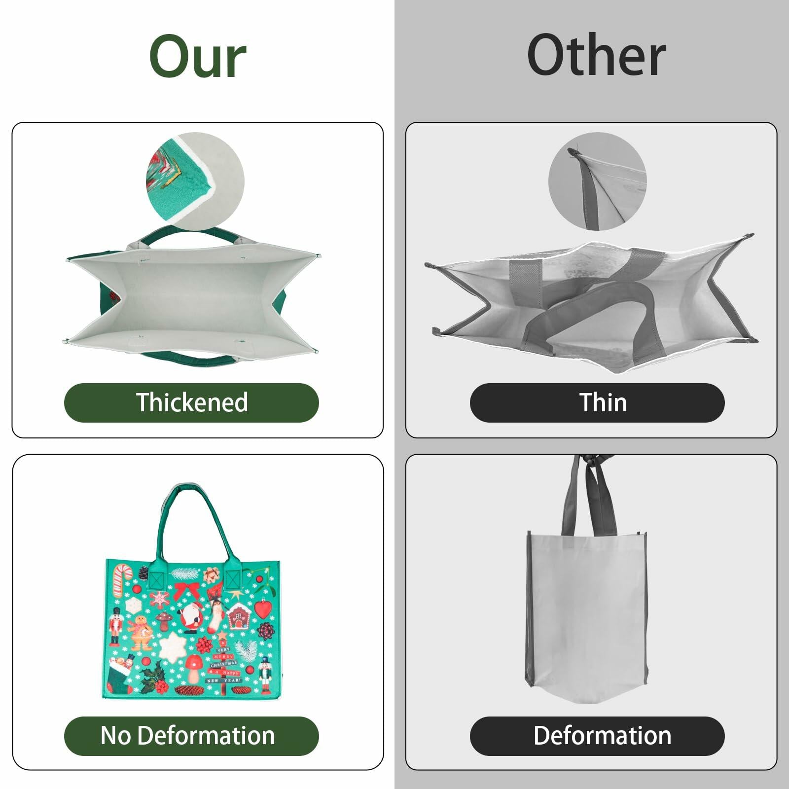 JIWINNER 4PCS Felt Gift Bags 13x7x10 with Handles Christmas Wrapping