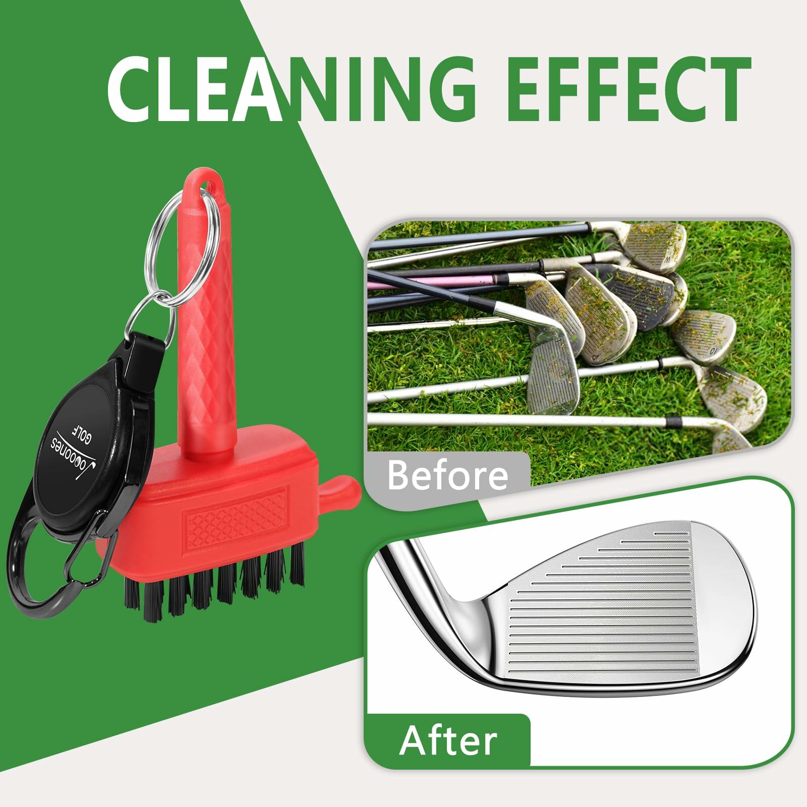 - PACKAGE CONTENT: Red mini golf club brush X 1, Retractable Keychain X1, Replaceable heads X 1, Packaging box X 1