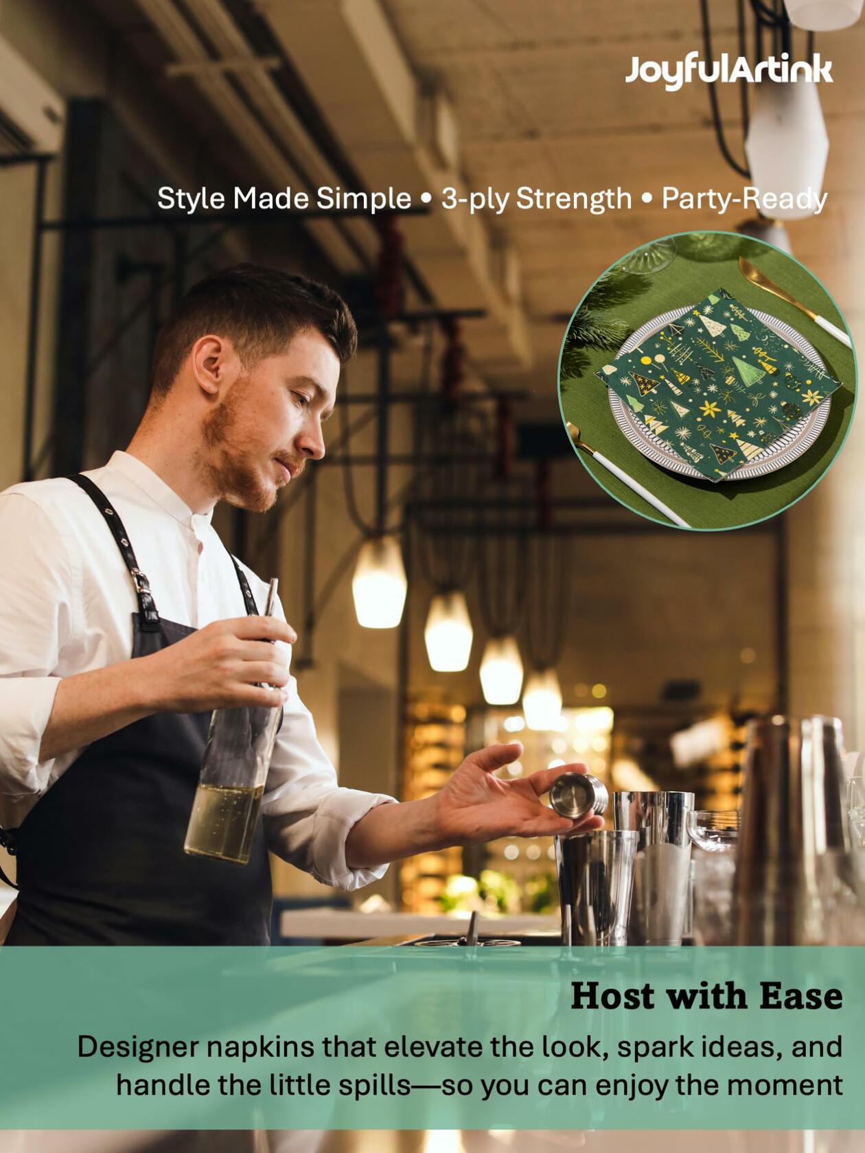 JoyfulArtink 3-Ply Paper Napkins 6.5x6.5in 50 Count Festive Forest Green