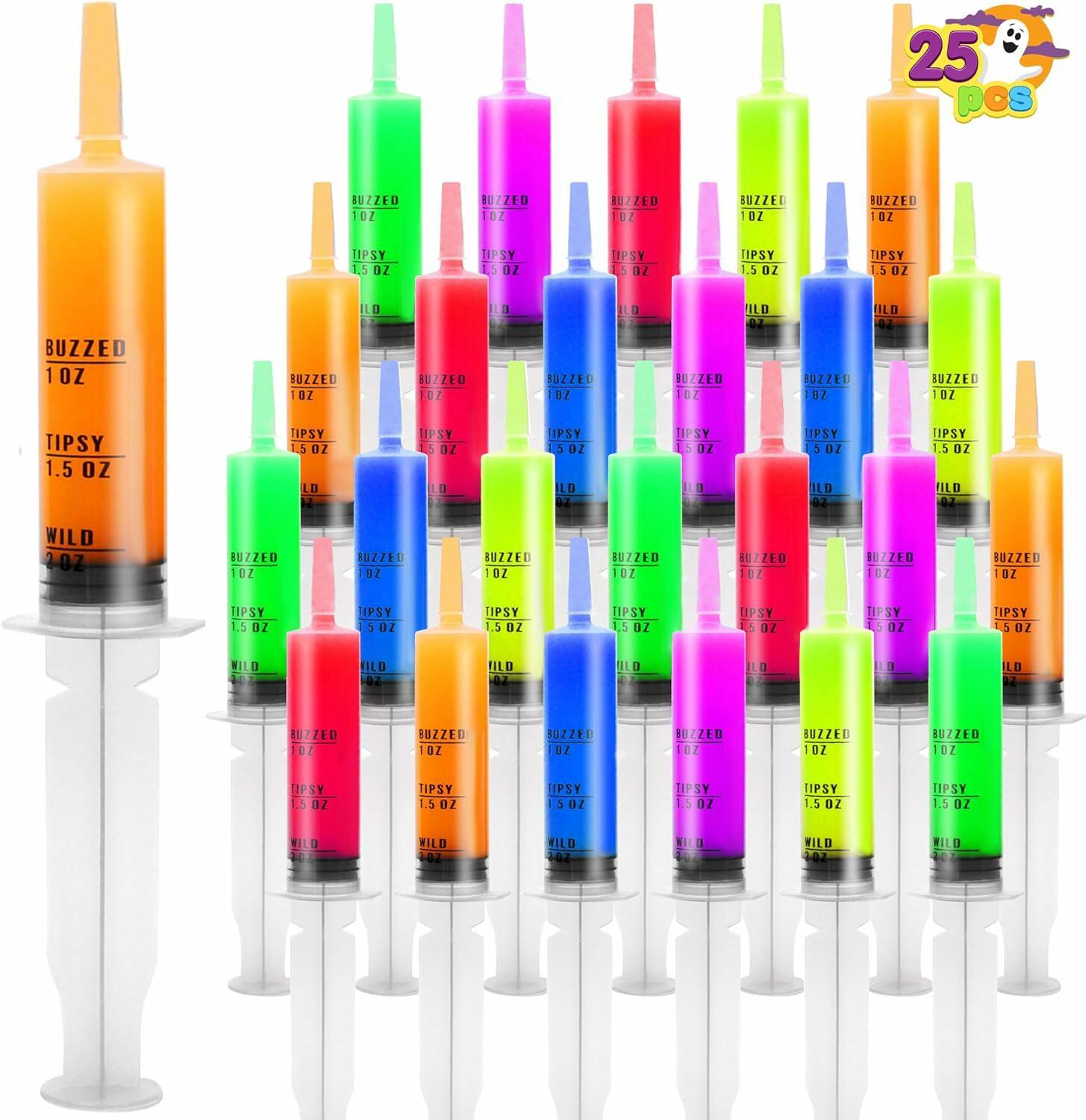 JOYIN Pack of 25 Plastic Syringes 60ml 2 oz Easy-Grip Caps Reusable Container Tubes with Individually Wrapped & Caps 25 PCs 60ml Plastic Syringes 2 oz Easy-Grip Caps Reusable Container Tubes with Individually Wrapped & Caps SUPER VALUE PACK. Our Pudding Syringes Set includes 60 pcs of Plastic Syringes with caps and can take 60 ml (2oz) of solution. UNIQUE DESIGN & EASY TO USE. The Pudding on the syringe can be made in minutes. Very quick and easy, simply pull back on the Pudding, and the mixture liquid flow on the syringes and enjoy! Do not waste your money with toy-like imitations. This Pudding is perfect for all events. You can guarantee your guest a great time with this Pudding. PREMIUM QUALITY. Child Safe: Non-Toxic. Meet the US toy standard. Safety test approved. BPA FREE and ASTM approved EXCEPTIONAL CARE: We're big on the little things. That's why customer safety and satisfaction are at the heart of everything we do. Contact us if products don't meet your expectations. We look forward to ensuring every moment brings you joy.