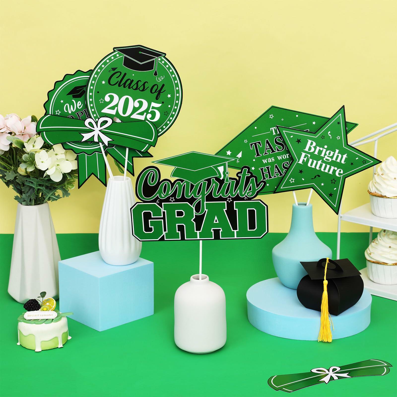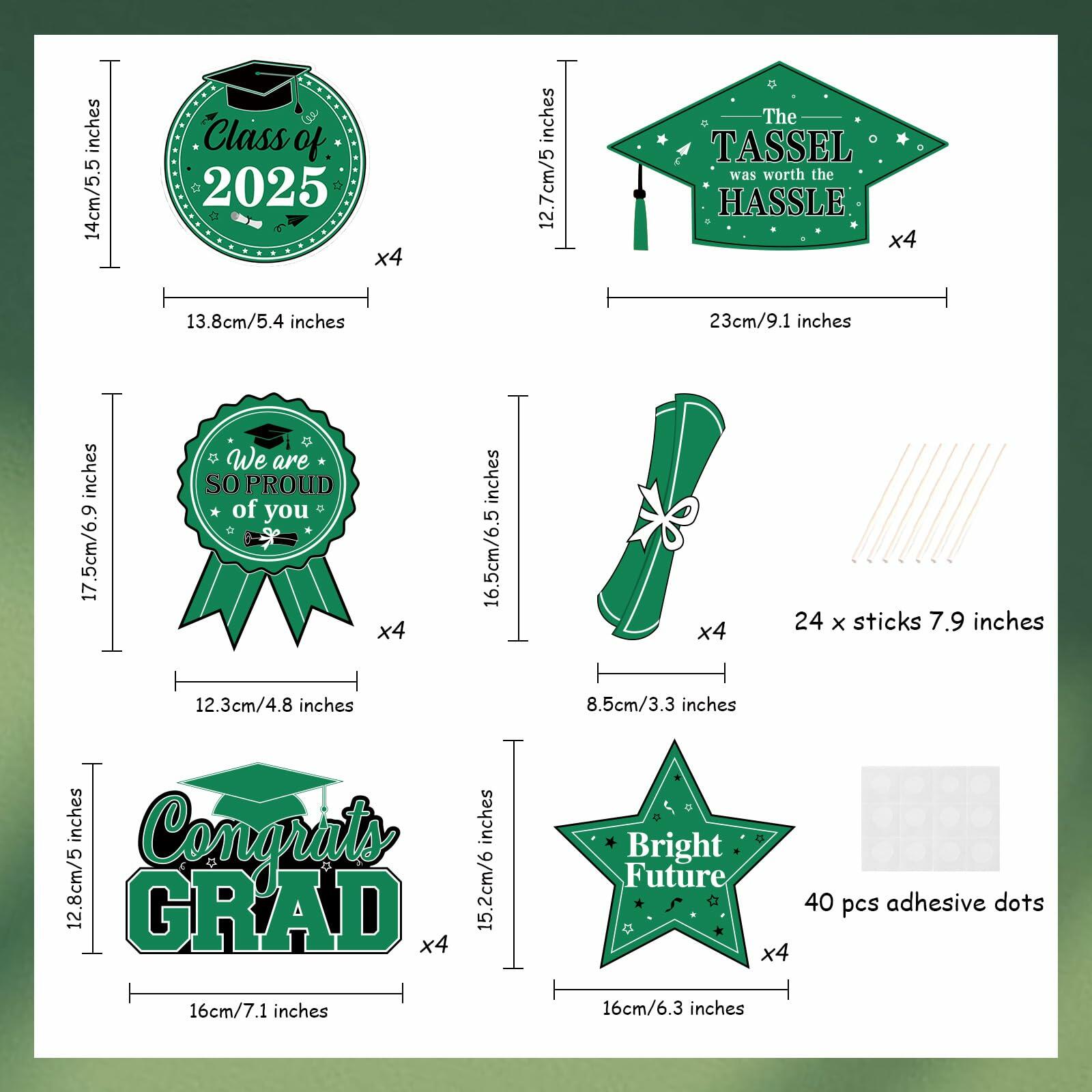 - 2025 Graduation Party Decorations: The teal graduation party centerpiece sticks include 24 pieces cards in 6 different shapes, like bachelor cap, circle and star, along with 24 pieces paper sticks and 48 pieces adhesive dots, which can satisfy your decoration needs.