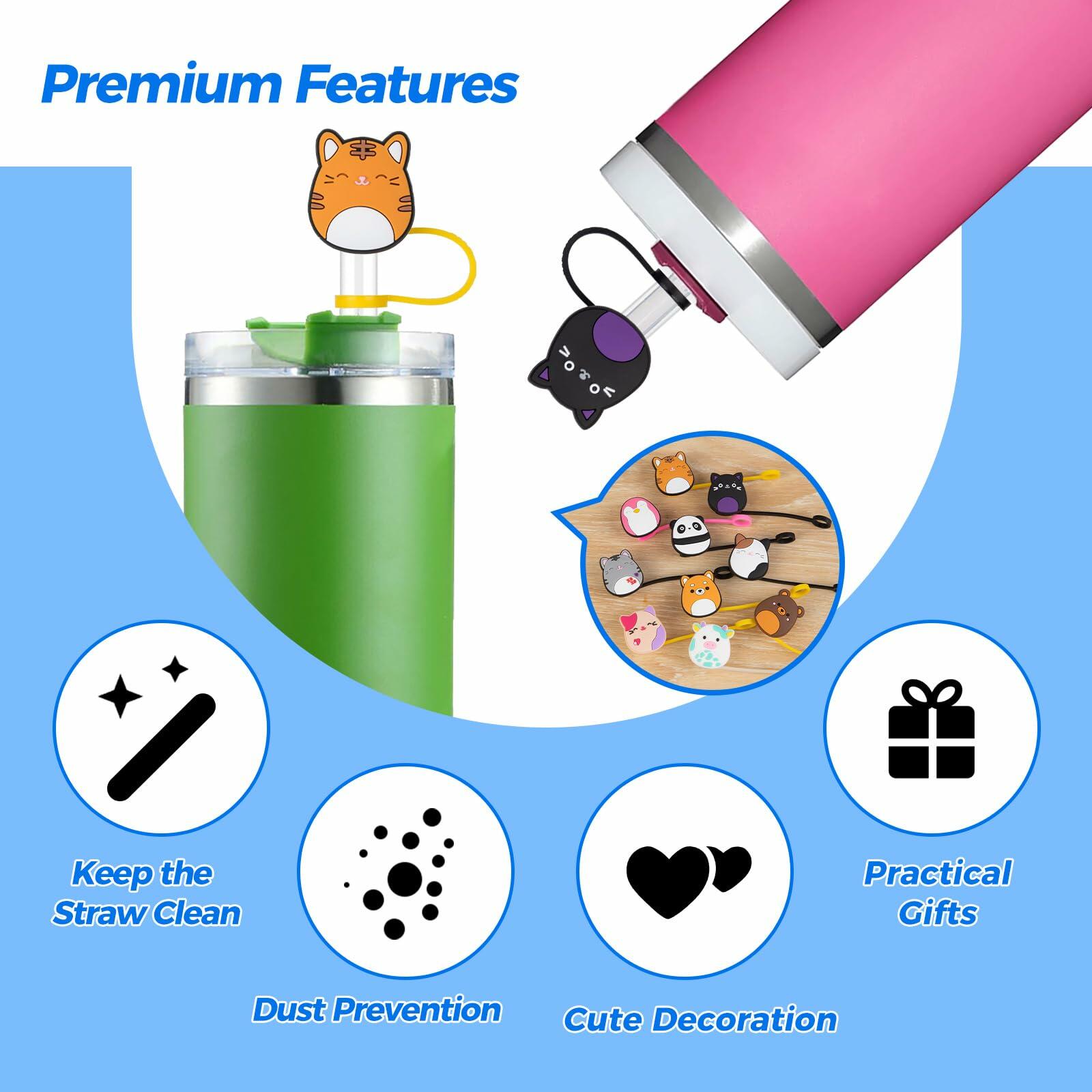 Specification Material: good quality silicone. Size: 9-10mm/0.35-0.39Inch. Styles: Stanley straw caps. Package: 10pcs. Features Package Includes 10pcs different straw cap toppers, cute and stylish, the creative caps shapes are decorative and suitable for adding exquisite designs to your straws. Material & Size The stanley straw covers are made of good quality silicone, durable, reusable, non-toxic and tasteless, they fit 9-10mm/0.35-0.39Inch straws. Reusable Easy to clean and reusable. protect your straws and cups from polluting by dust and others. Easy to Use These straw caps can be fixed on straws directly, and hang on the straws, not easy to fall off, and helpful for keeping your straws from dust. Customer Service Please contact us about product problems, we will provide you with the best service and offer a prompt refund or replacement in time.
