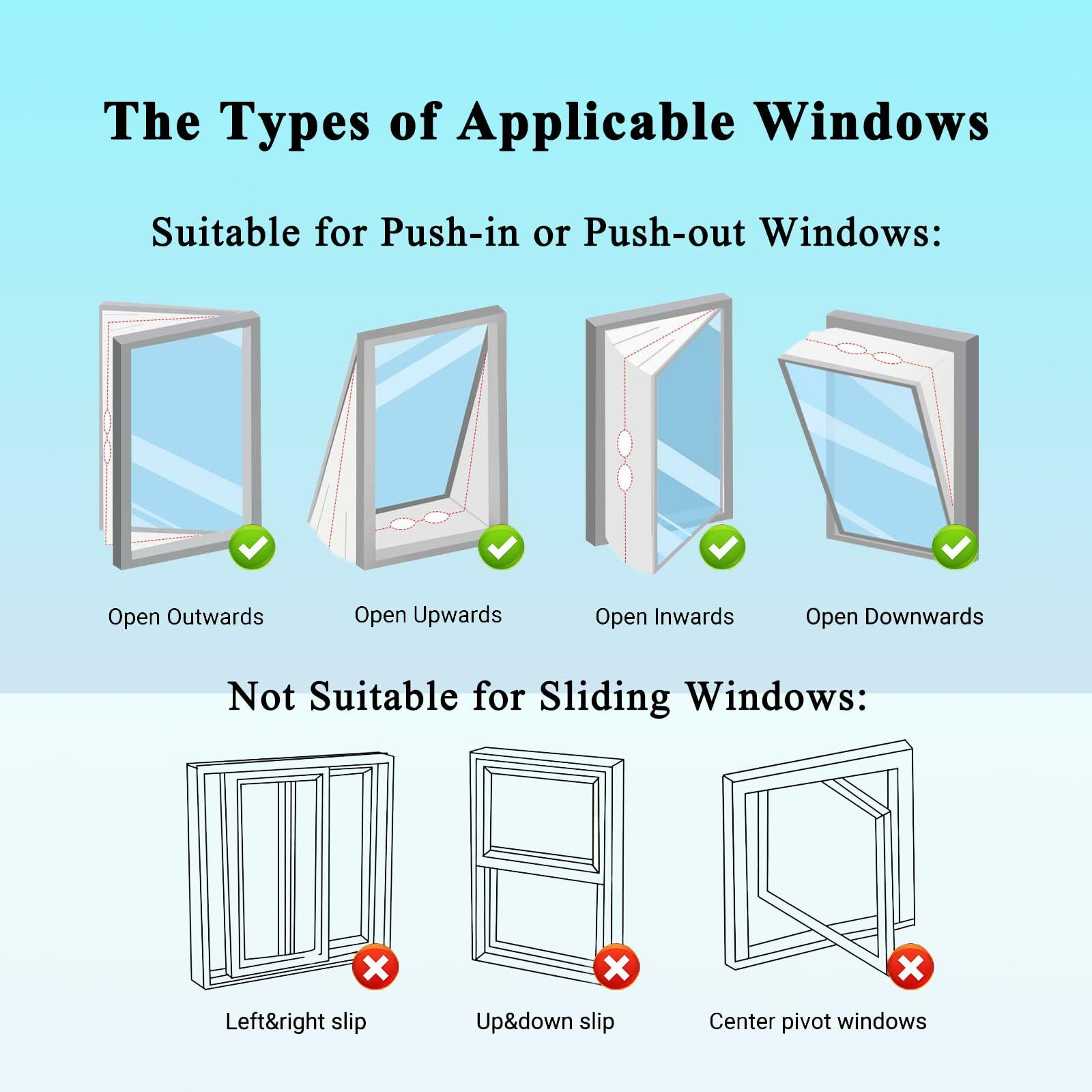 - 【Universal Fit for Casement Windows】Our casement window air conditioner seal kit fits all standard outward-opening or inward-opening windows up to 400CM. Perfect for single or dual hose portable ac window vent kit setups. (Please measure your window size before pur chase.)