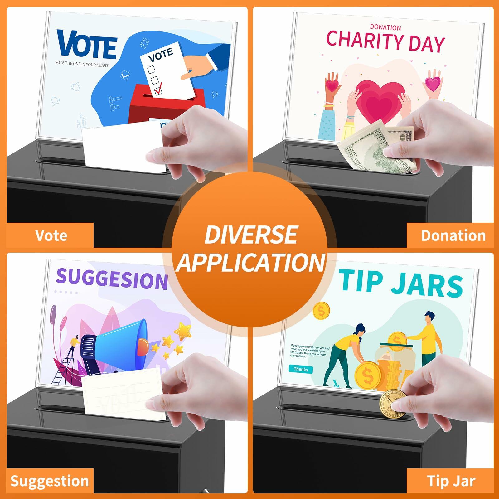 - Wide Use: Ideal for collecting donations, votes, suggestions, or business cards in various environments likeschools, offices, or retail settings.