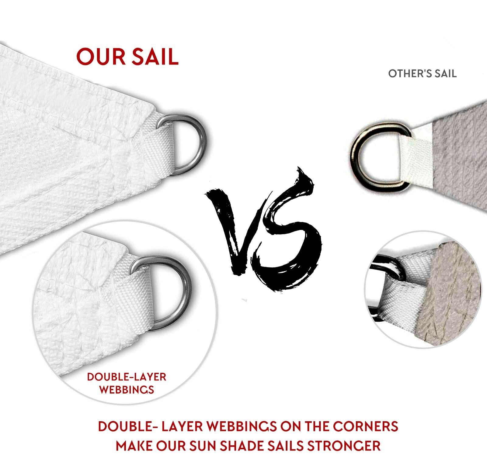 - Durable: double layer webbing go through all the edges , no just on the corners, makes the shade sail strong and last long.