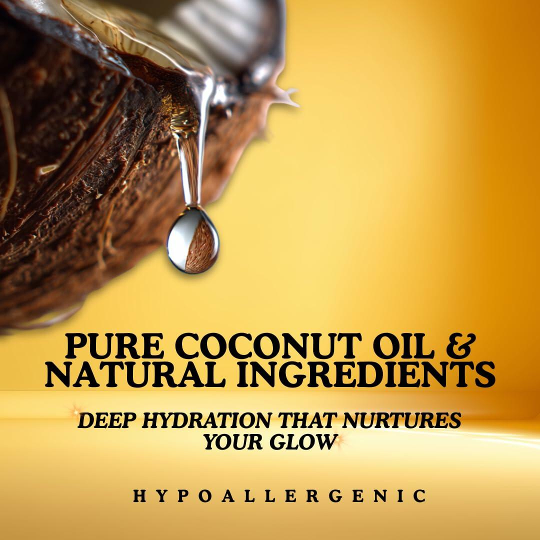 - NATURAL COCONUT MOISTURE Crafted with natural ingredients and pure coconut oil to hydrate, soften, and protect your skin — supporting daily nourishment and lasting comfort.