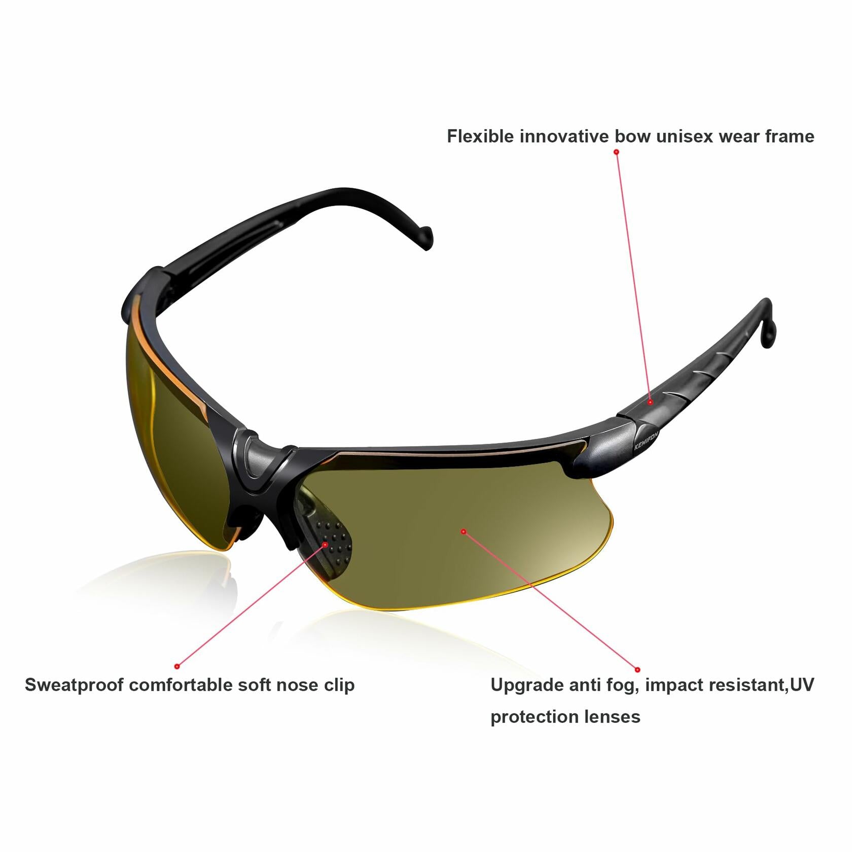 KEMIFON Shooting Safety Glasses Anti Fog Tactical Ballistic Grey Yellow Lenses