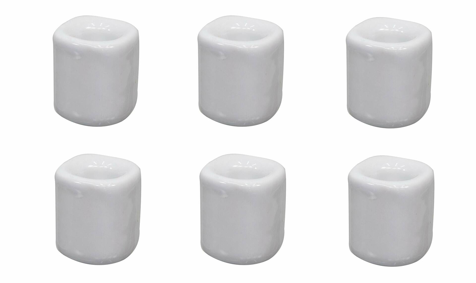 - Set of 5 mini ceramic ritual spell candle holders for 1/2" chime candles. White in color.