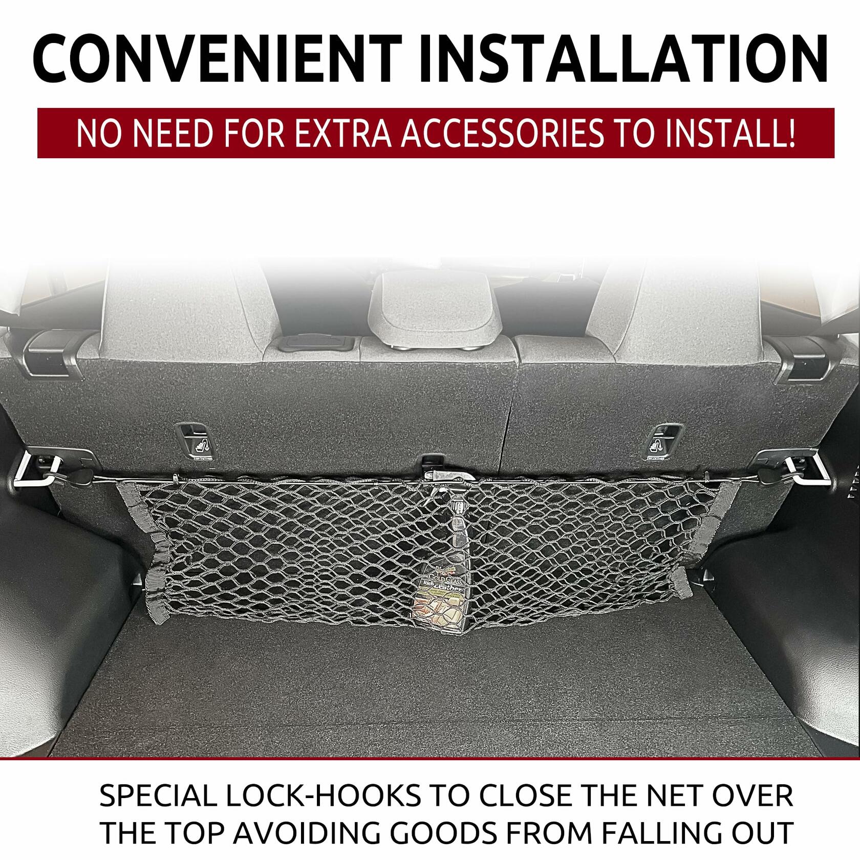 - Custom-crafted for the cargo area, this durable elastic-mesh net has a hammock-style design that holds items upright and in place. It attaches in seconds to mounting points in the cargo area and folds flat when not in use.