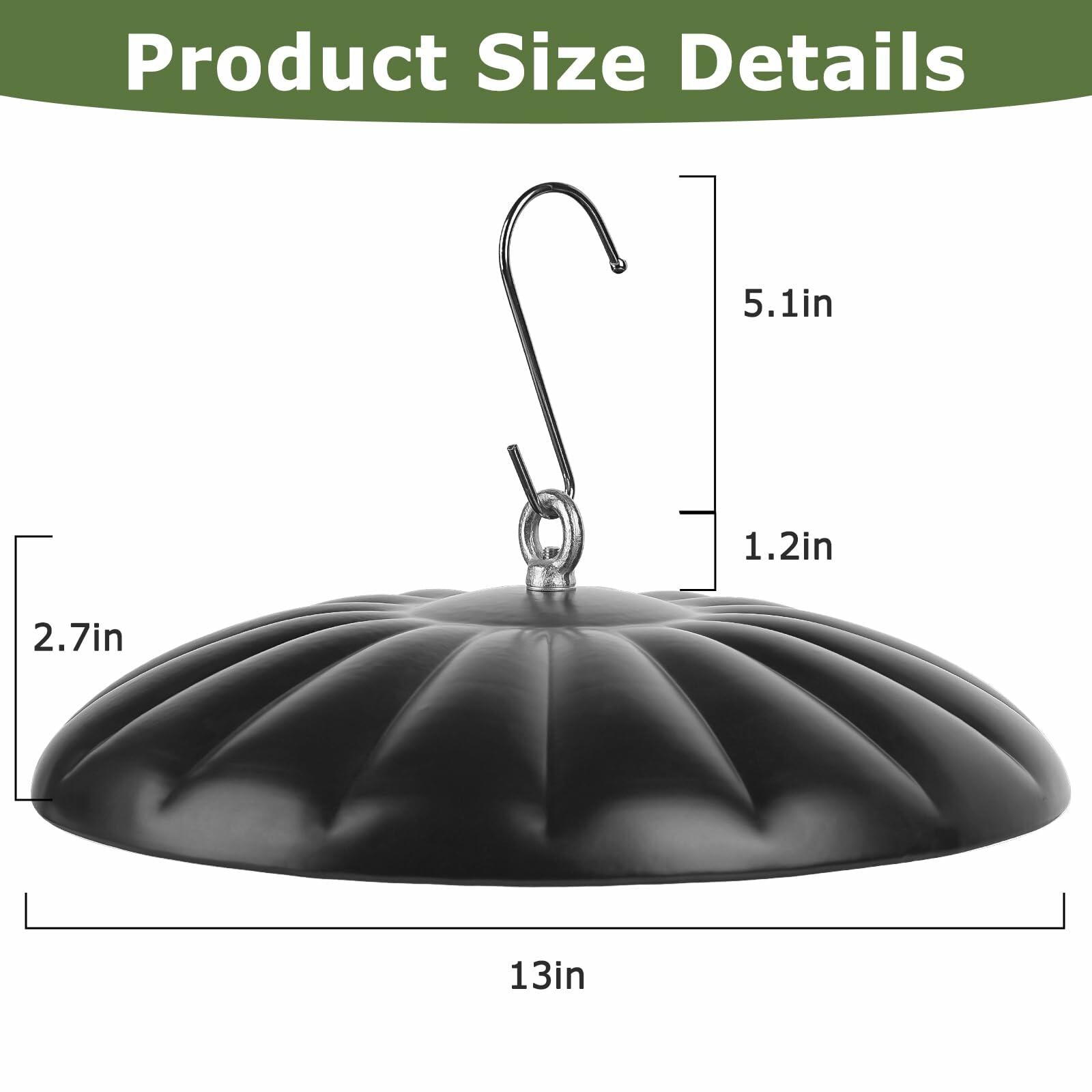 - Large Protective Cover: The squirrel baffle has a diameter of 13 inches and a slippery surface, providing comprehensive protection for bird feeders from squirrel intrusion.