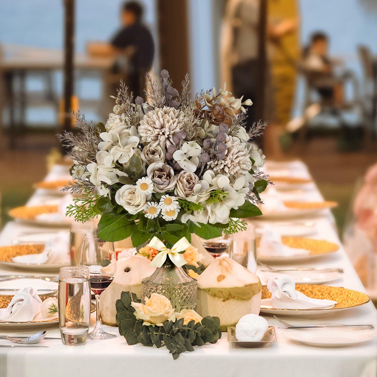 - Artificial Flowers Home Decor: Our designers carefully match our flower bouquets, and the artificial flower arrangements are tied with string. Even if you're not skilled at arranging flowers, you can still enjoy a beautifully designed bouquet. Our silk flowers are vibrant, lifelike, and require minimal maintenance. They are long-lasting and perfect for small desktops or dressers, making them an ideal tabletop decoration for any season.