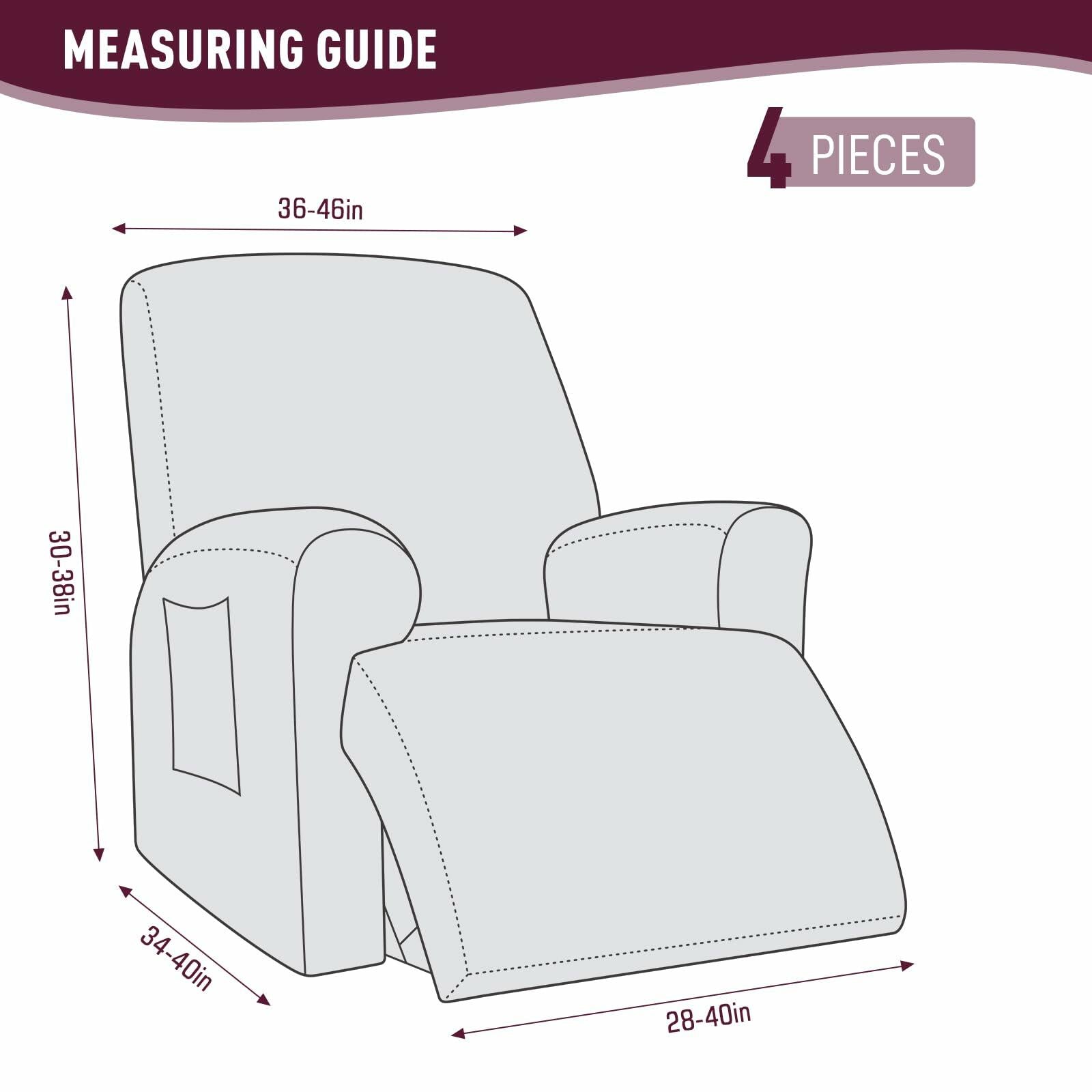 - MULTIPLE SIZE OPTIONS: Our recliner chair covers are suitable for recliner chair with the width of 36-46 inches. Please measure the size of your sofa before purchase, follow the Instructions to make sure that our recliner chair covers can match your sofa